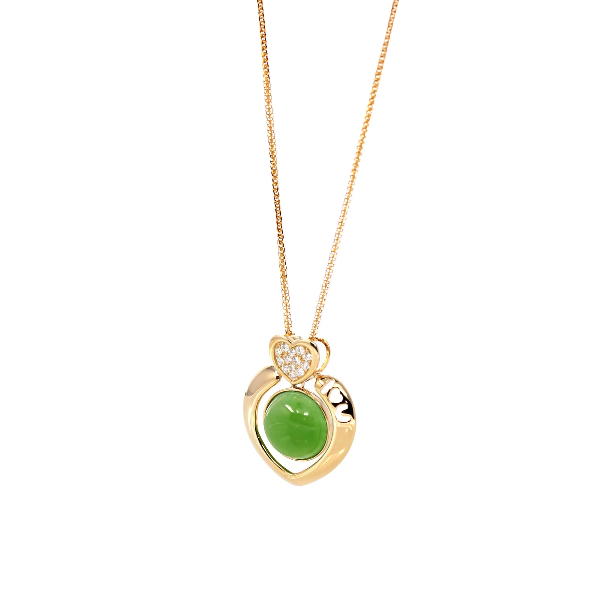 14K Gold Genuine Green Apple Green Jade Love Pendant Necklace With VS1 Diamond