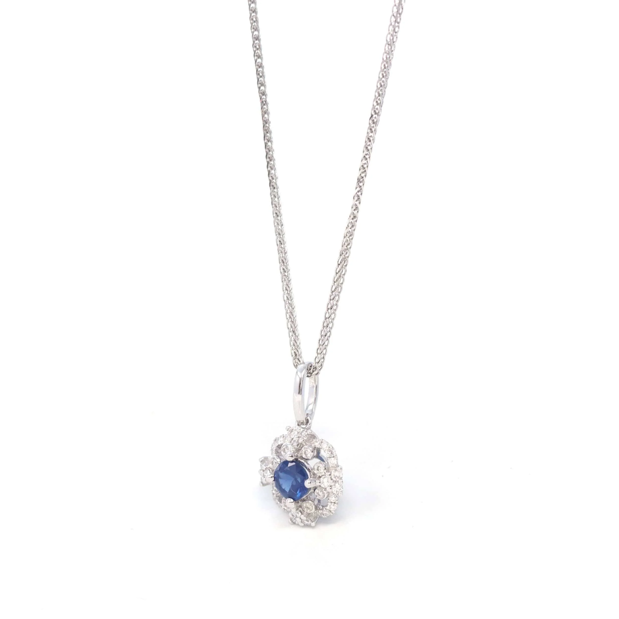 14k White Gold Natural Sapphire Necklace With Diamonds