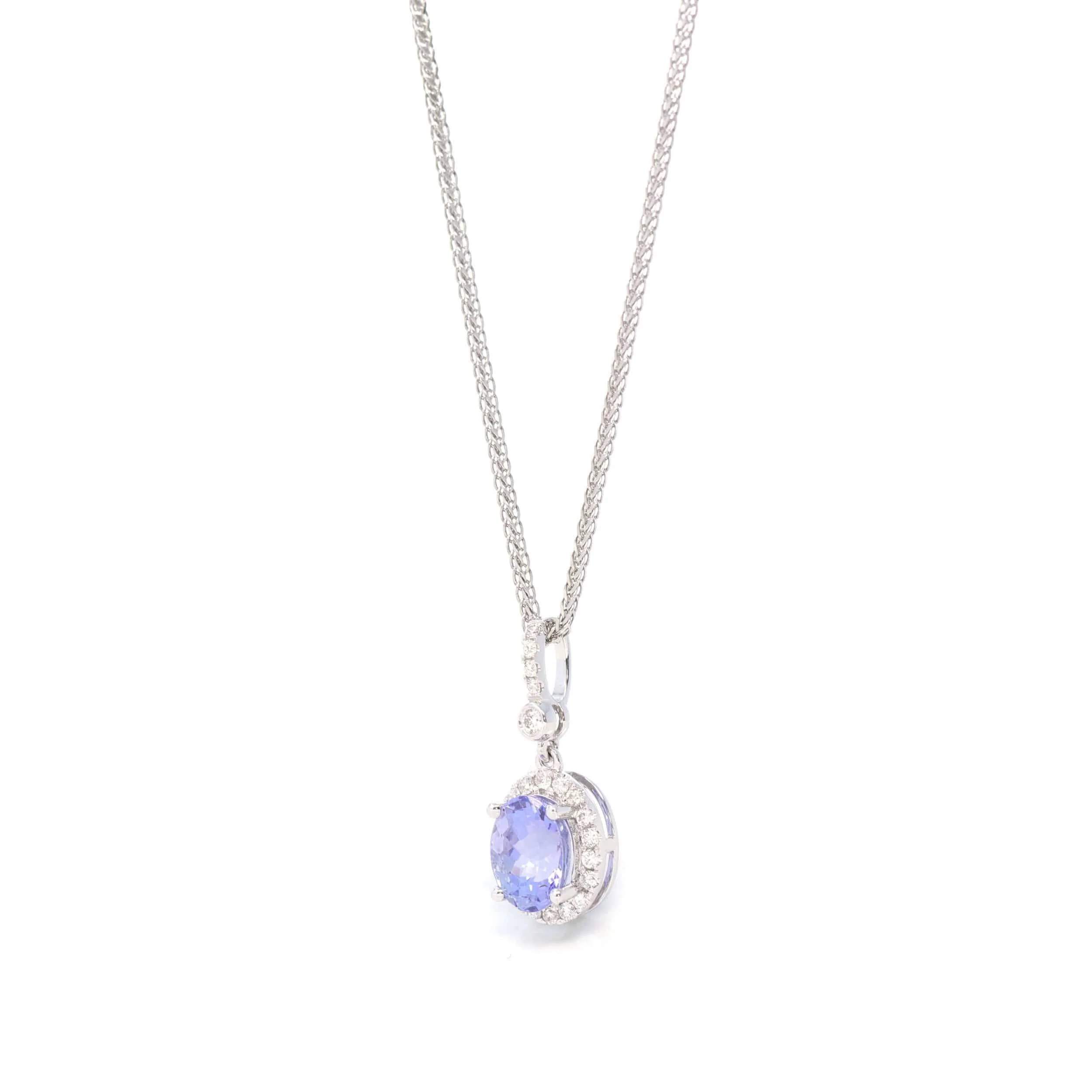 14k White Gold Oval Tanzanite Necklace With Diamonds