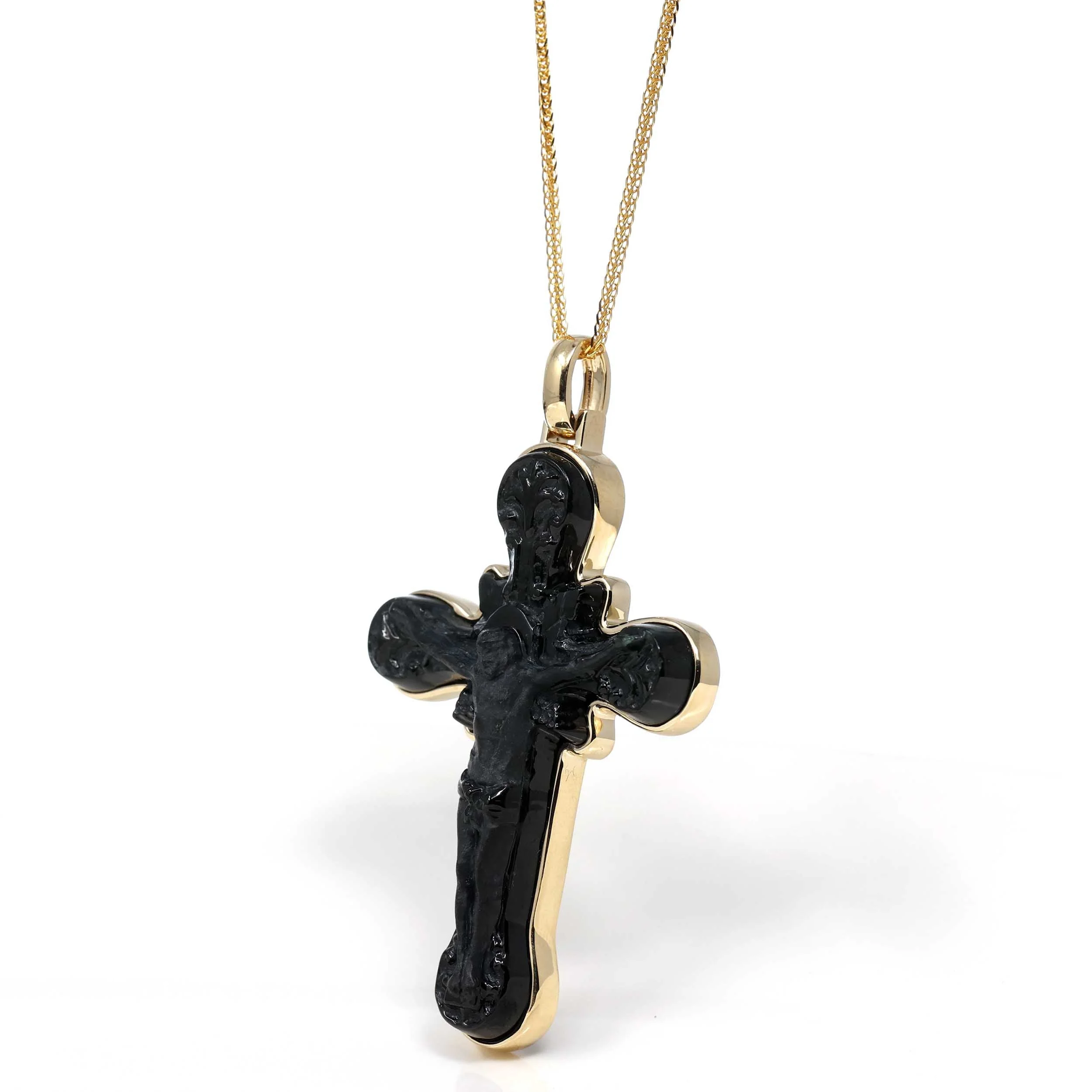 14K Yellow Gold & Black Nephrite Jade Crucifix Pendant