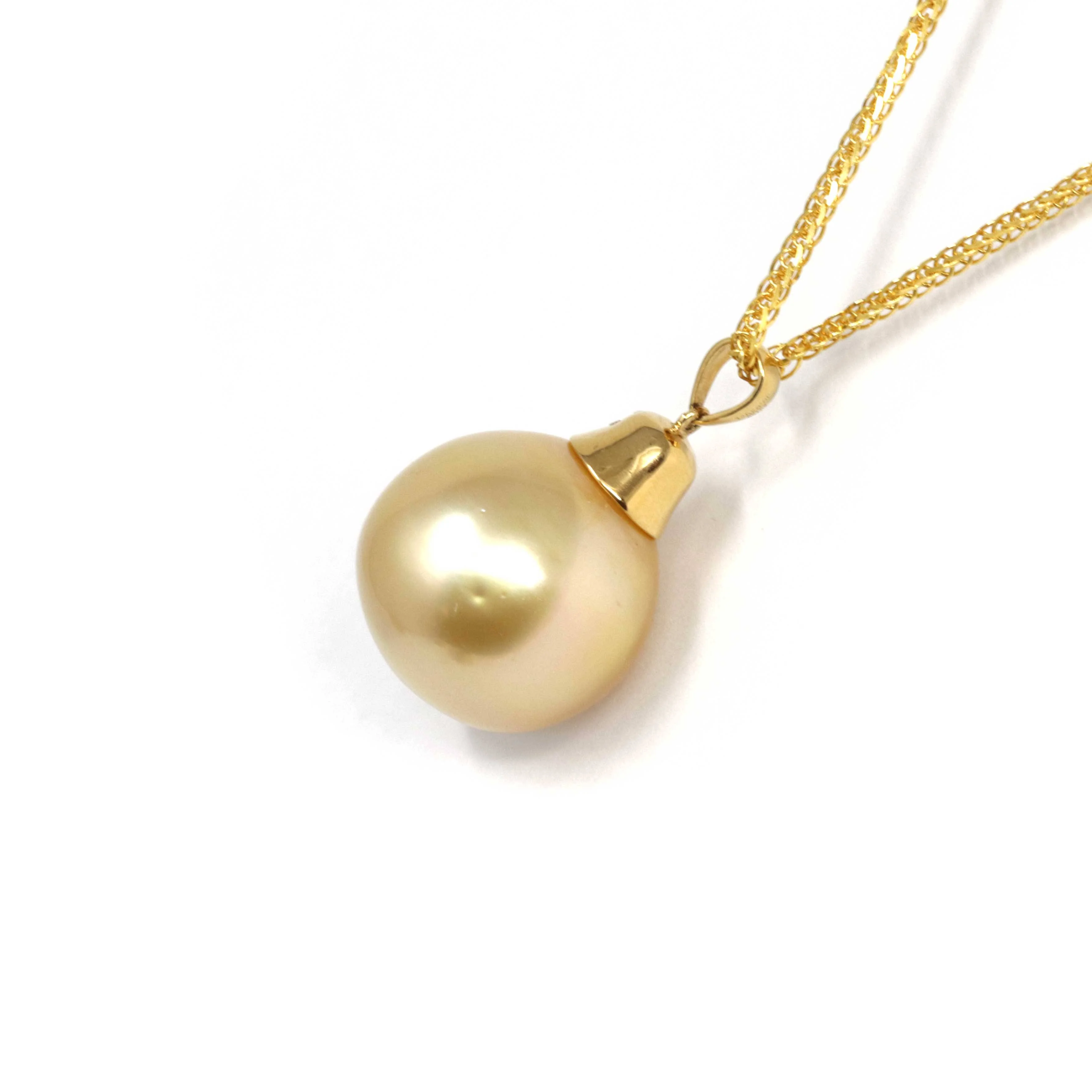 18k Gold Round Golden South Sea Cultured Pearl & Diamond Pendant Necklace for Women, AAA Quality