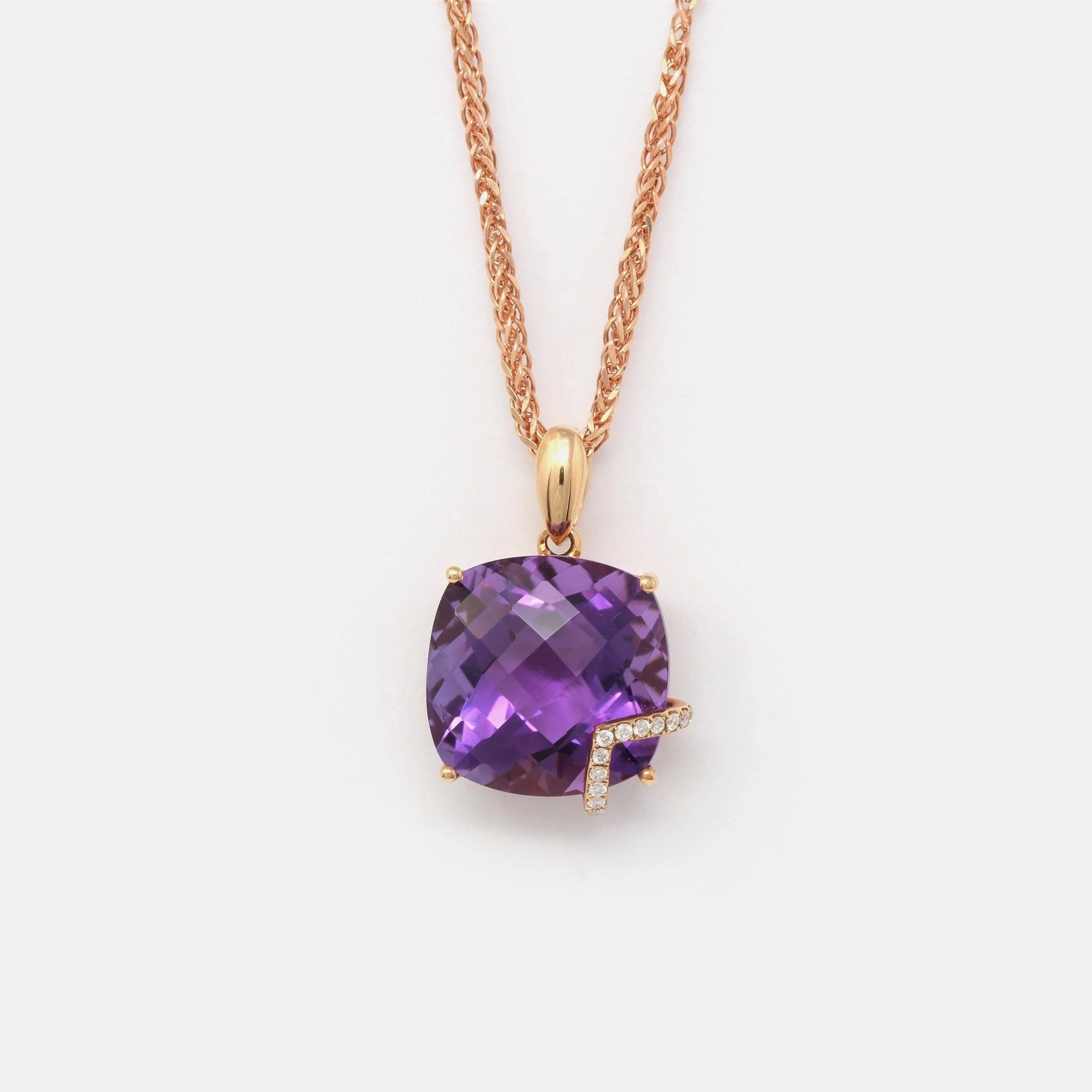 18k Rose Gold Genuine AAA Amethyst Pendant Necklace