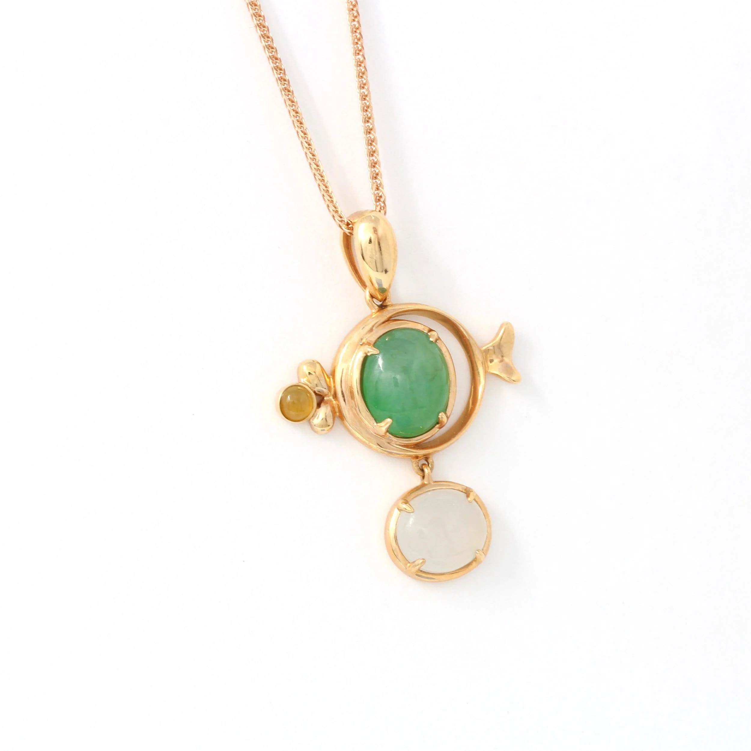 18k Rose Gold Genuine Burmese Jadeite " Fish" Pendant Necklace