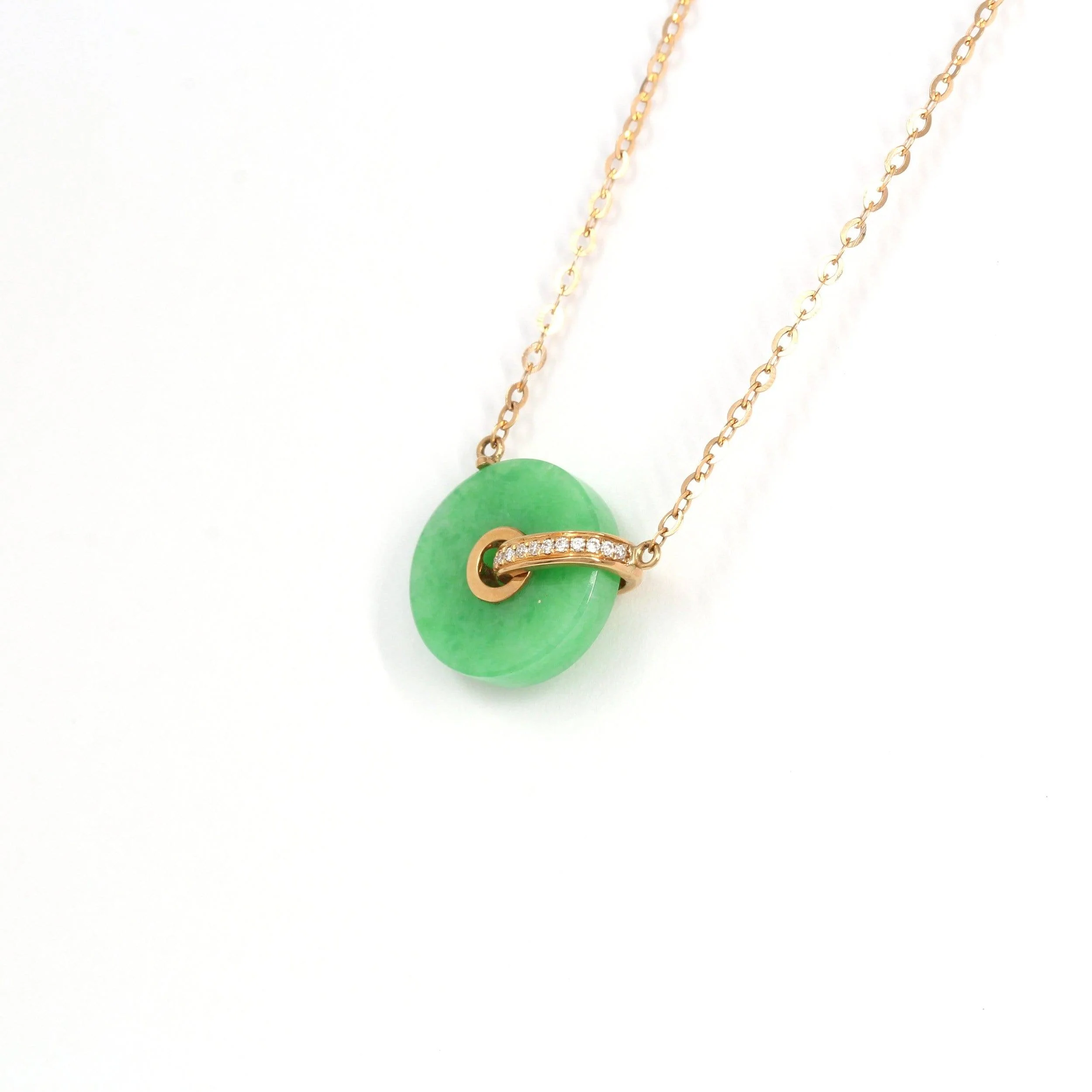 18k Rose Gold Genuine Burmese Jadeite Lucky Pendant Necklace With Diamonds