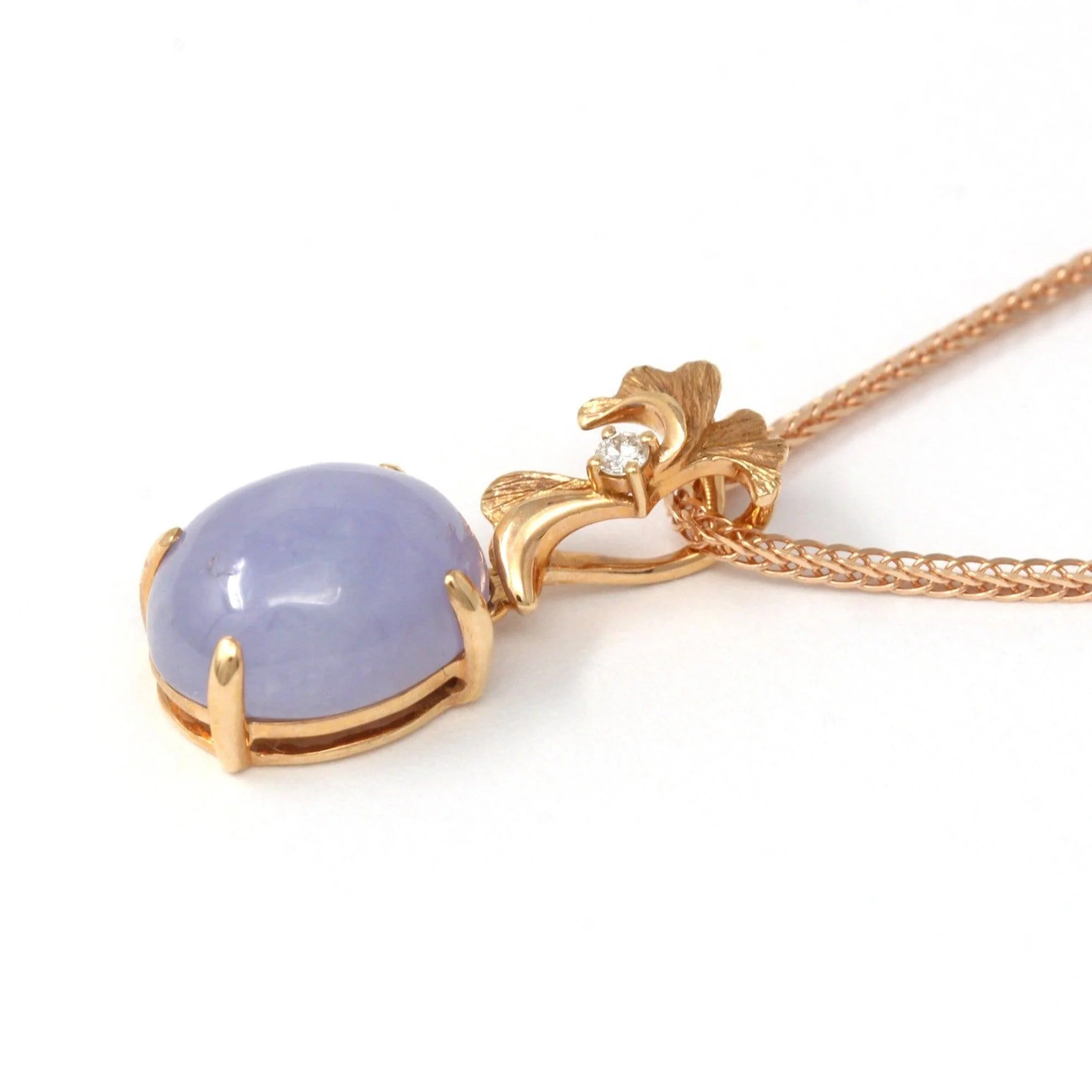 18k Rose Gold Genuine Burmese Lavender Jadeite Pendant Necklace With Diamond