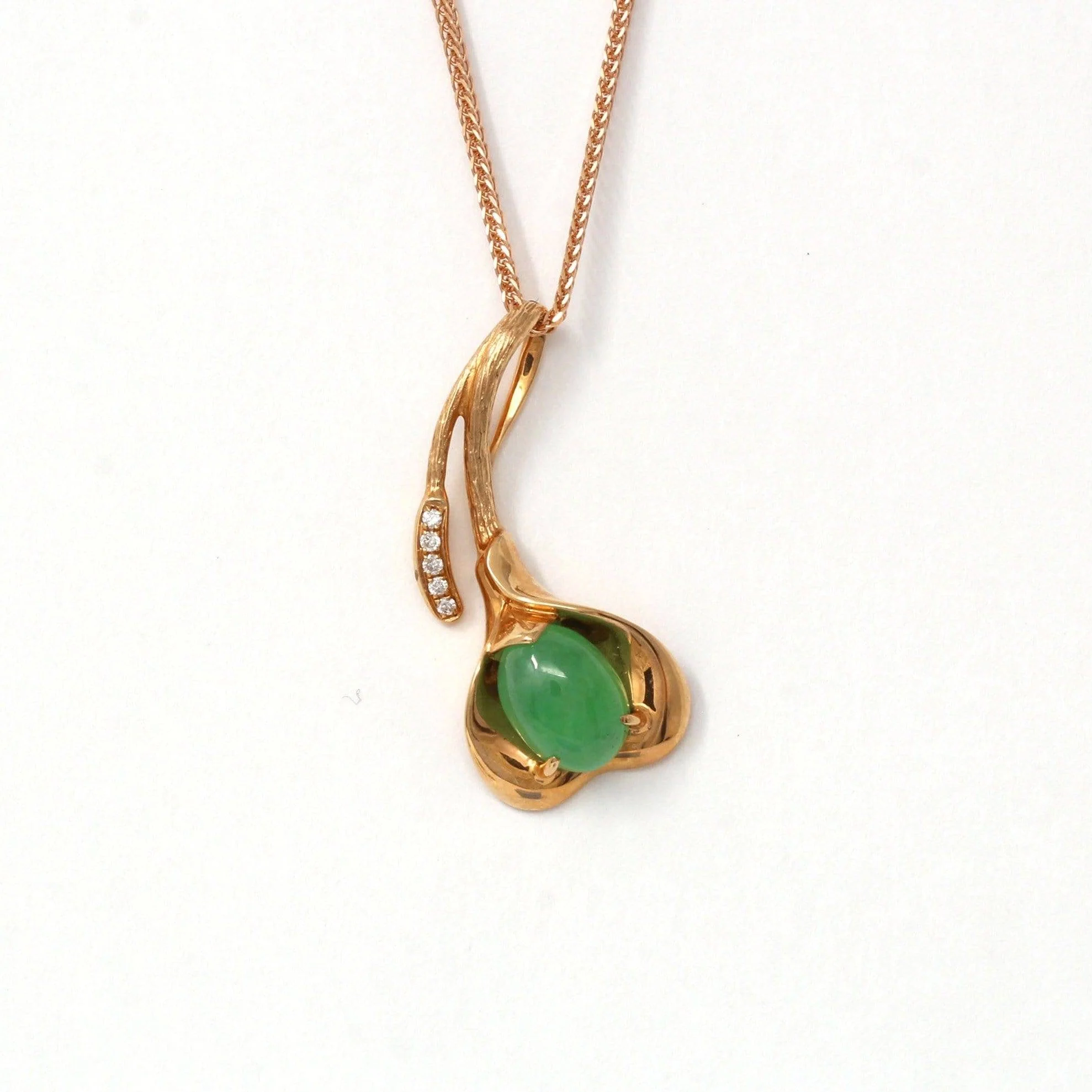 18K Rose Gold Genuine Imperial Jadeite Flower Pendant with Diamonds