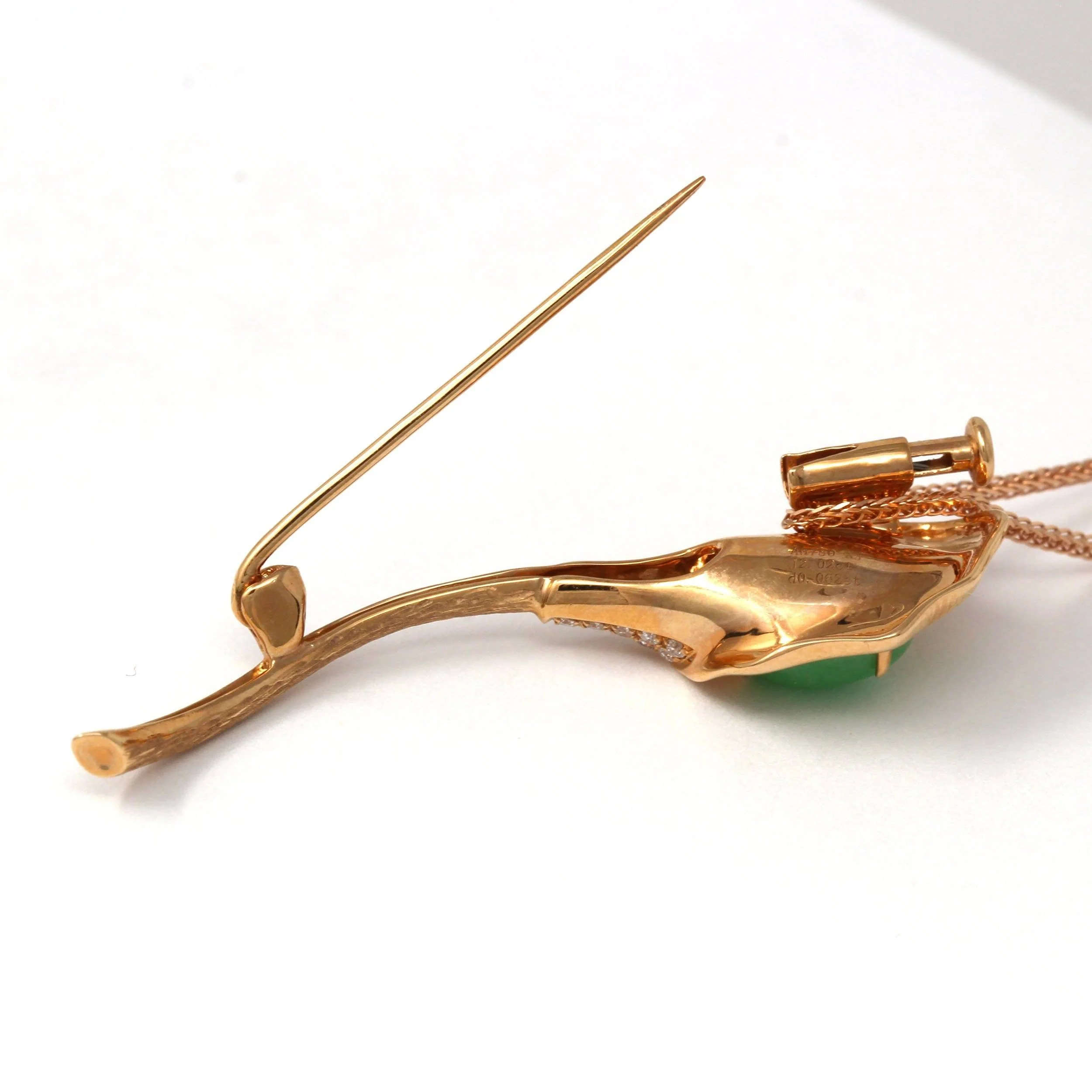 18K Rose Gold Genuine Imperial Jadeite Pendant & Brooch with Diamonds (2 in 1)