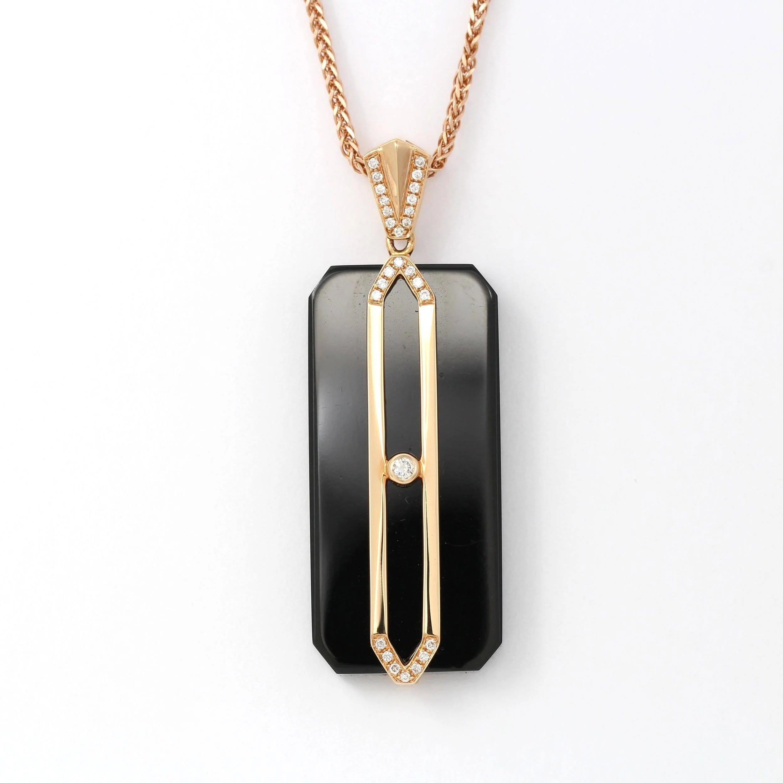 * INTRODUCTION---18k Rose Gold & Genuine Black Jade Pendant Necklace With SI Diamonds. This pendant made with high quality genuine high-quality black jade, The jade piece looks so clean and smooth without any clouds or cracks or any dirty spots. It's so bright like a mirror. The black jade pendant 's style is a simple and classic style. And every detail and angle is so good. The pendant looks so lovely and exquisite. Perfect gift for your love.