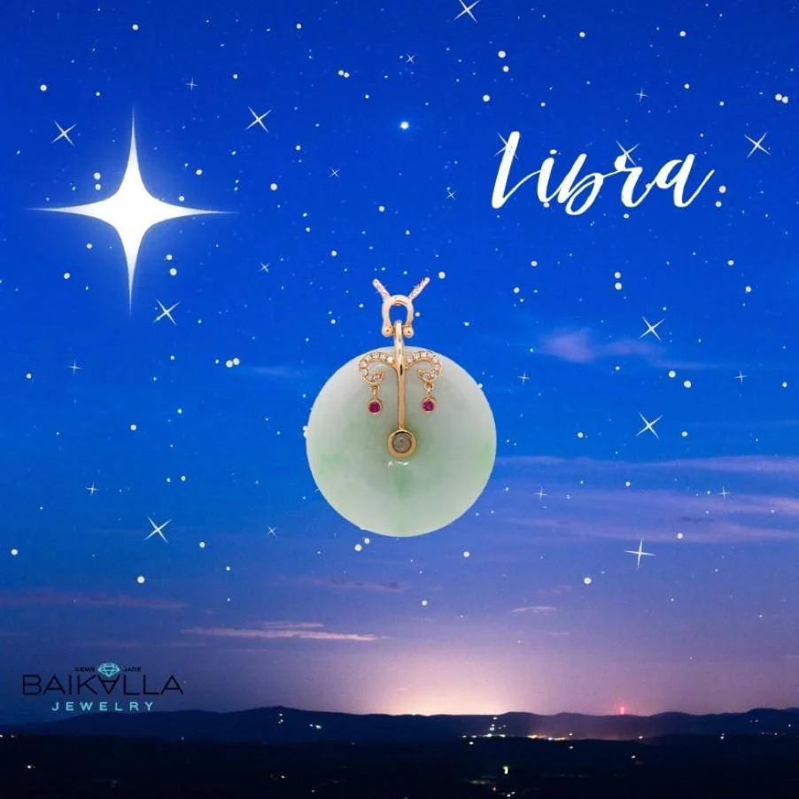 18k Rose Gold Jadeite Constellation 12 Zodiac Signs (Libra) Horoscope Necklace