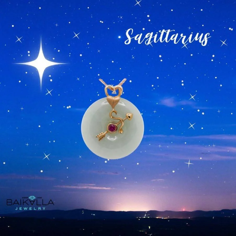 18k Rose Gold Jadeite Constellation 12 Zodiac Signs (Sagittarius) Necklace
