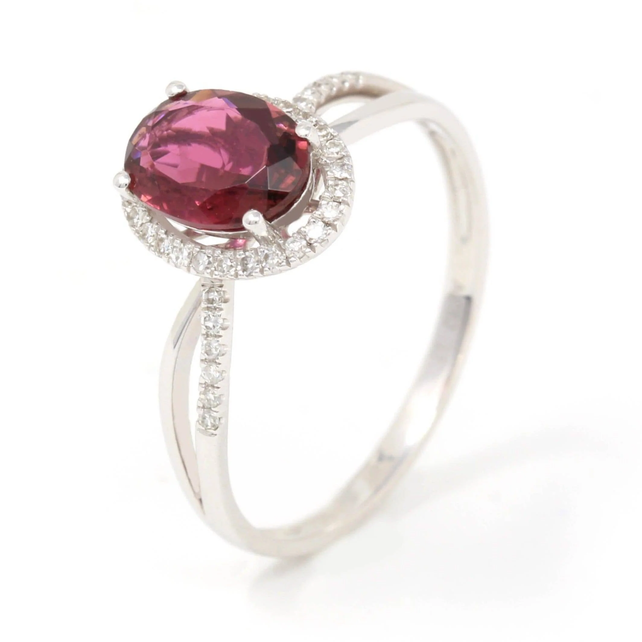 * Design Concept--- This ring features an oval natural Sri Lanka 3.0 ct Red Tourmaline the color is matched by a high quality ruby. The design is classic yet elegant. The ring looks very exquisite with 0.88 ct diamonds halo. Baikalla artisans are dedicated to combining beautiful gemstones with modern-day luxury. The essence of this 3ct tourmaline is unleashed by the strikingly brilliant diamonds and the simplistic setting design that keeps the originality of the rare gem.
