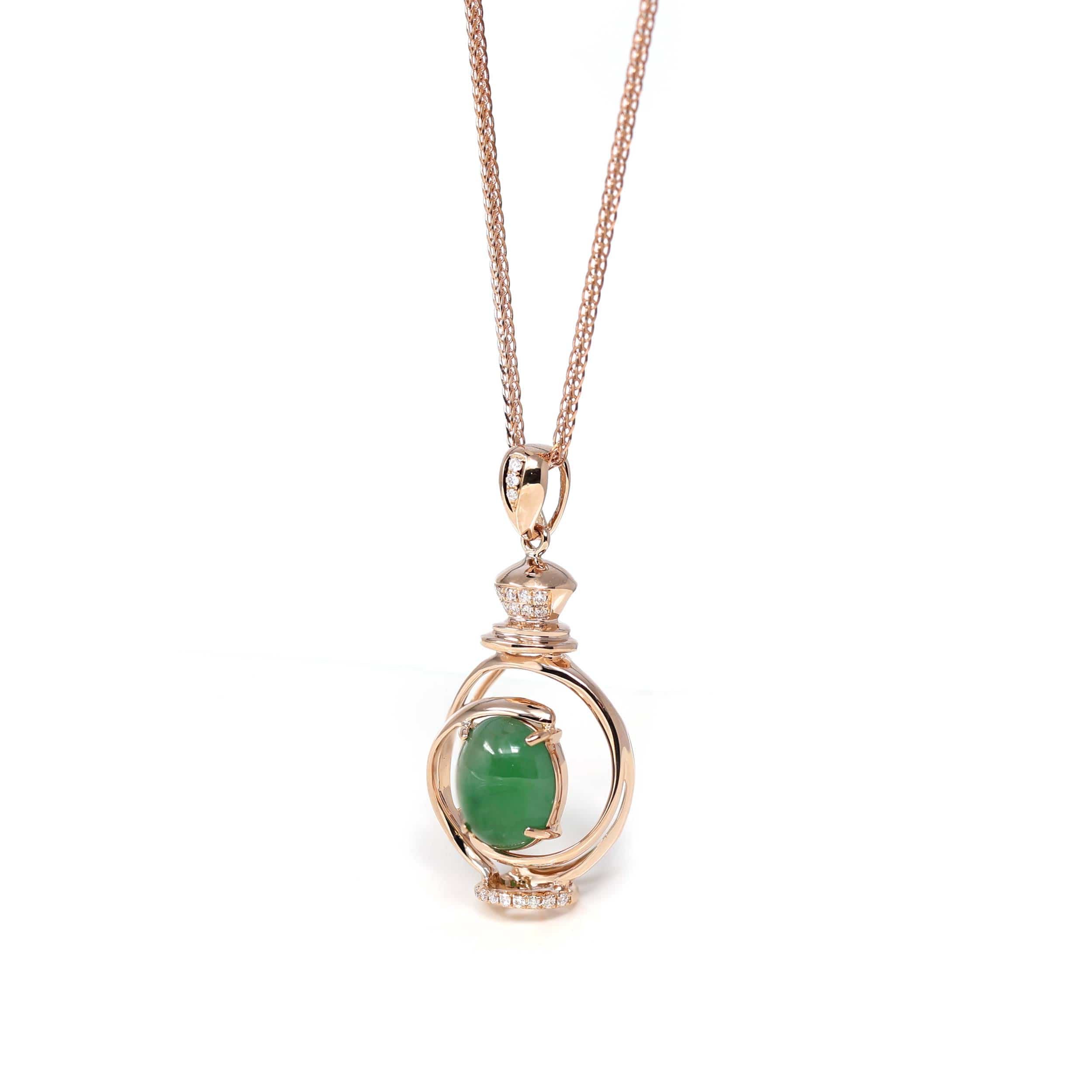 18K Rose Gold Oval Imperial Jadeite Jade Cabochon Necklace with Diamonds