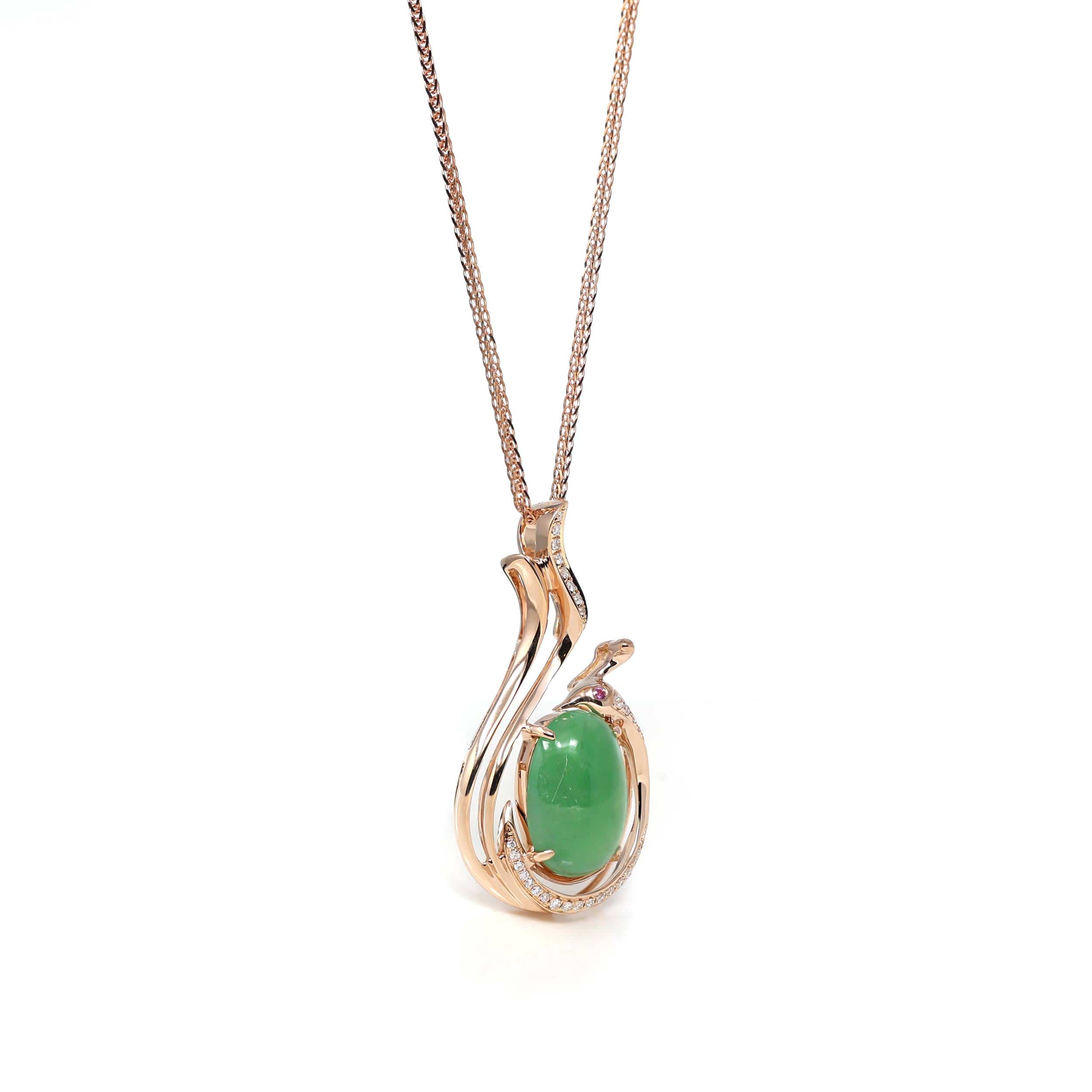 18K Rose Gold Oval Imperial Jadeite Jade Cabochon Necklace with Diamonds