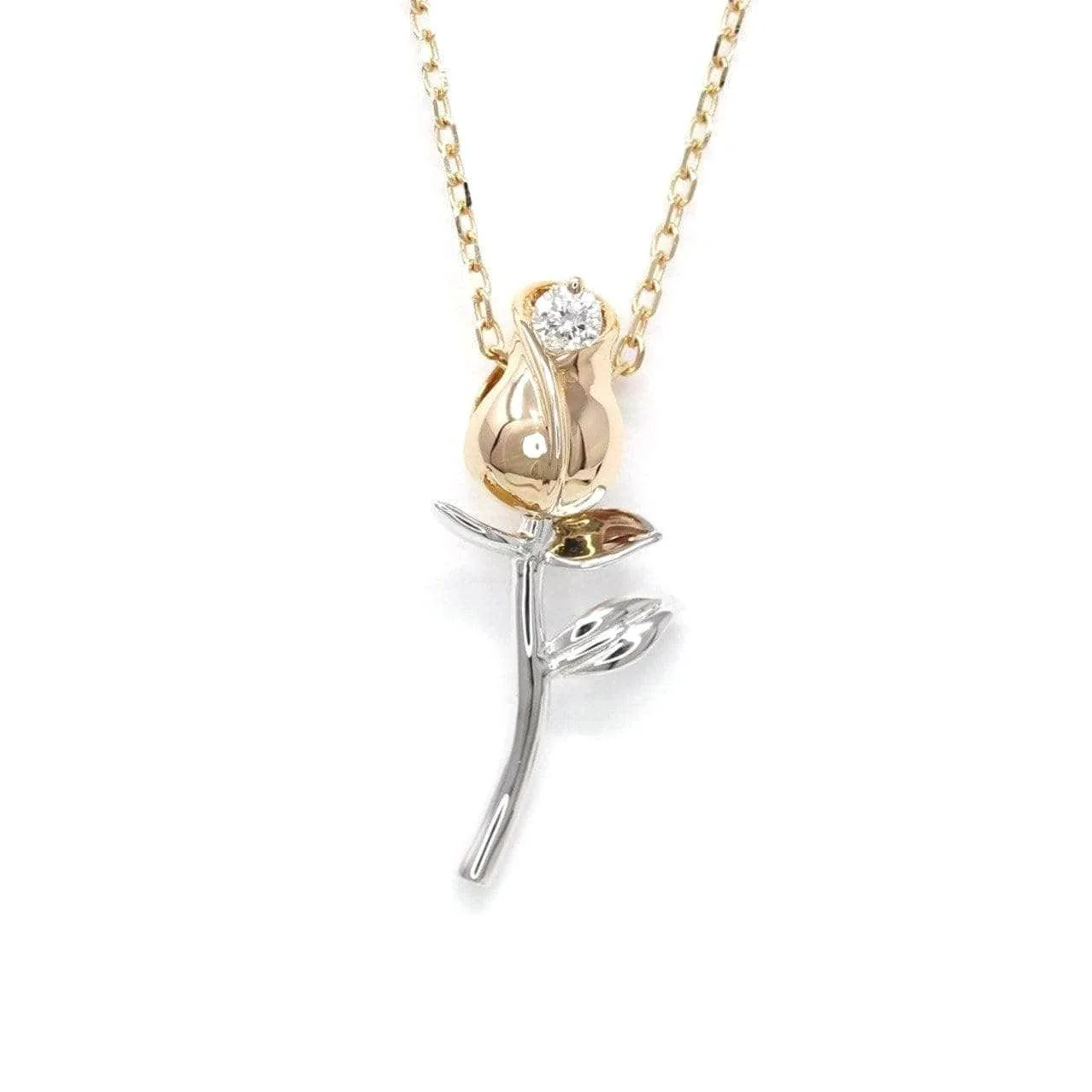 * DESIGN CONCEPT--- Inspired by the idea of versatility, and symbols of love. Baikalla artisans crafted this necklace with refined femininity and industrial modernity. Featuring two-tone gold Rose Flower that is sure to amaze with a small diamond in the center of the flower. The rose necklace just shows your love. It's a very perfect gift for yourself and your love.