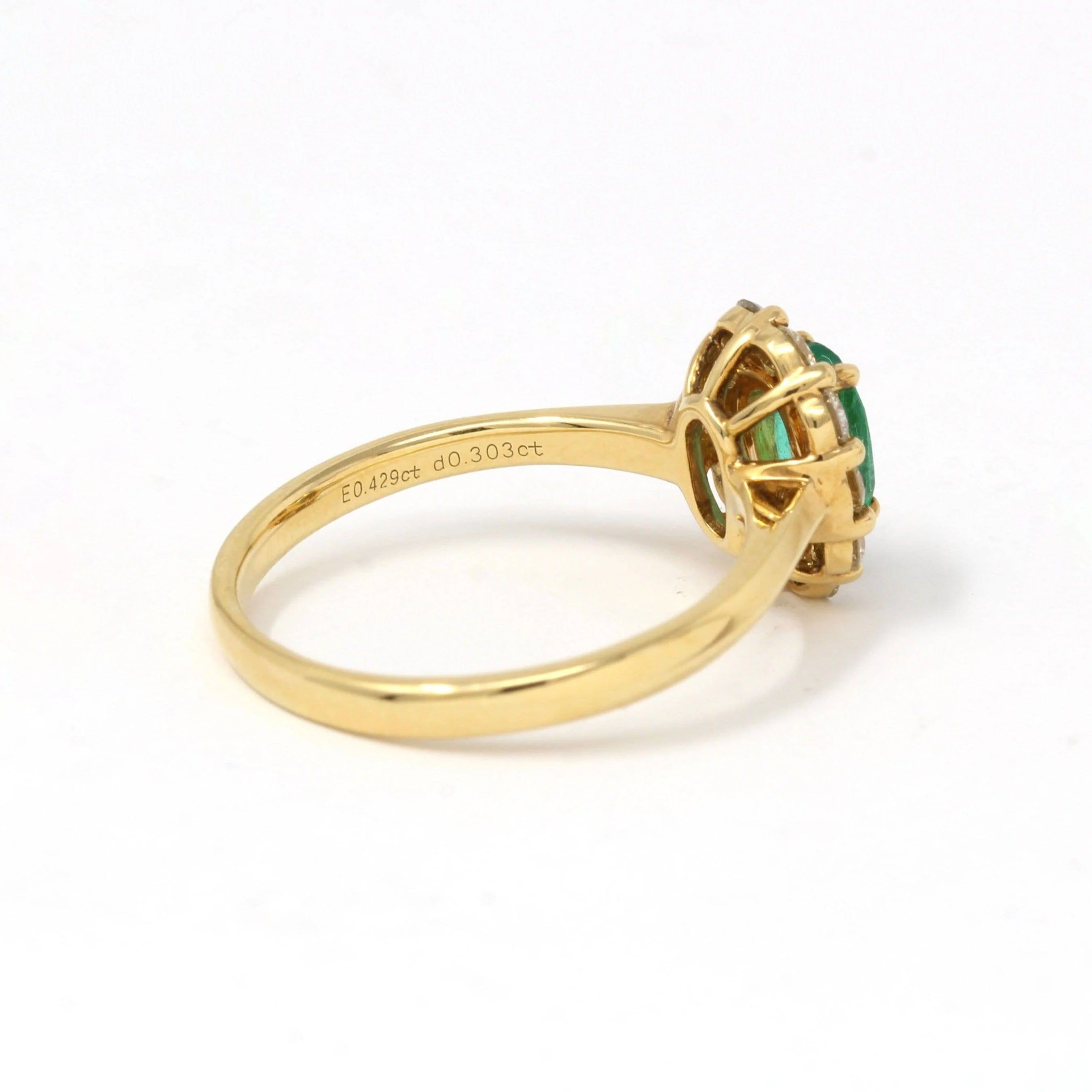 18k Yellow Gold Genuine Emerald Diamonds Halo Ring
