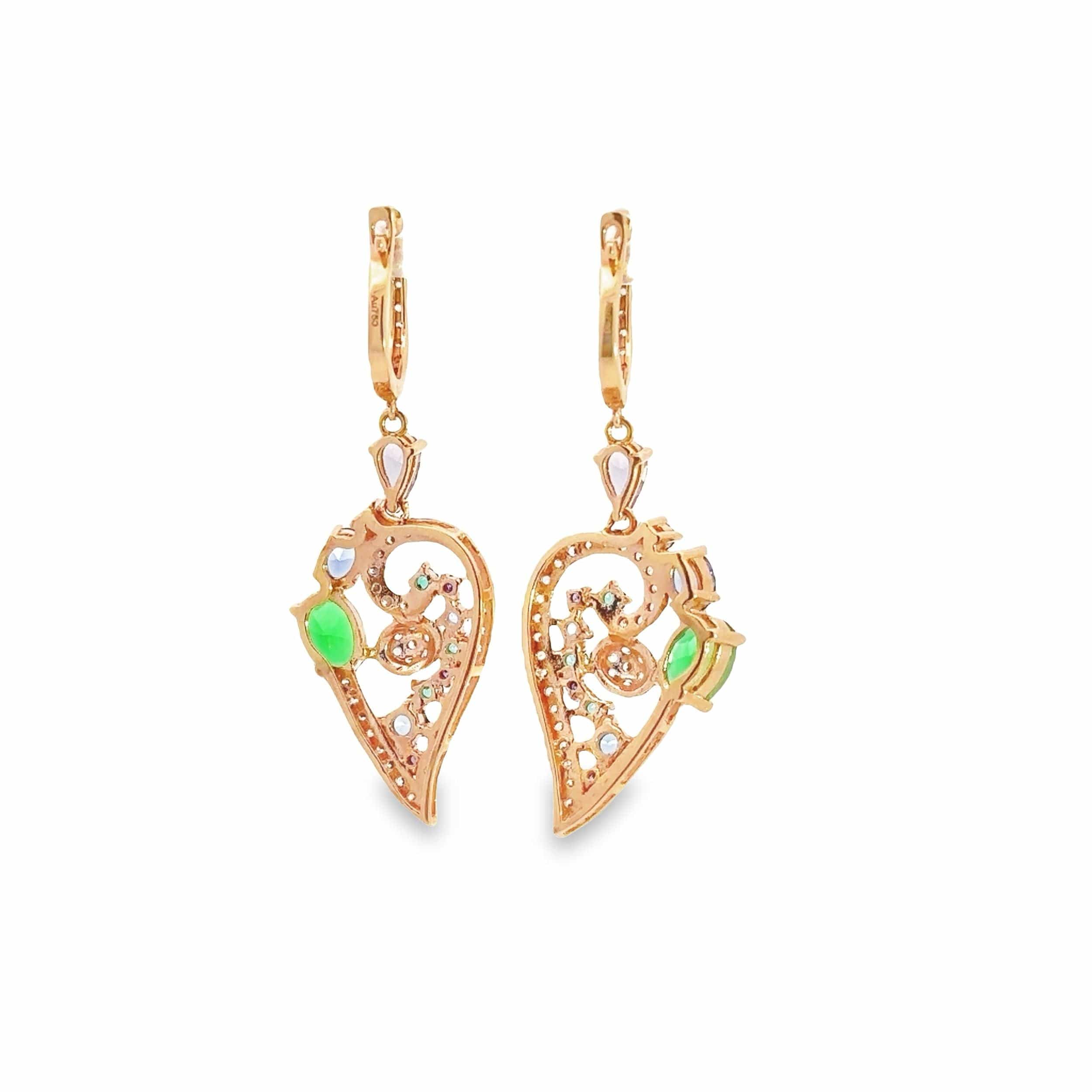 Baikalla 18K Rose Gold Sapphire and Zircon Heart Dangle Earrings