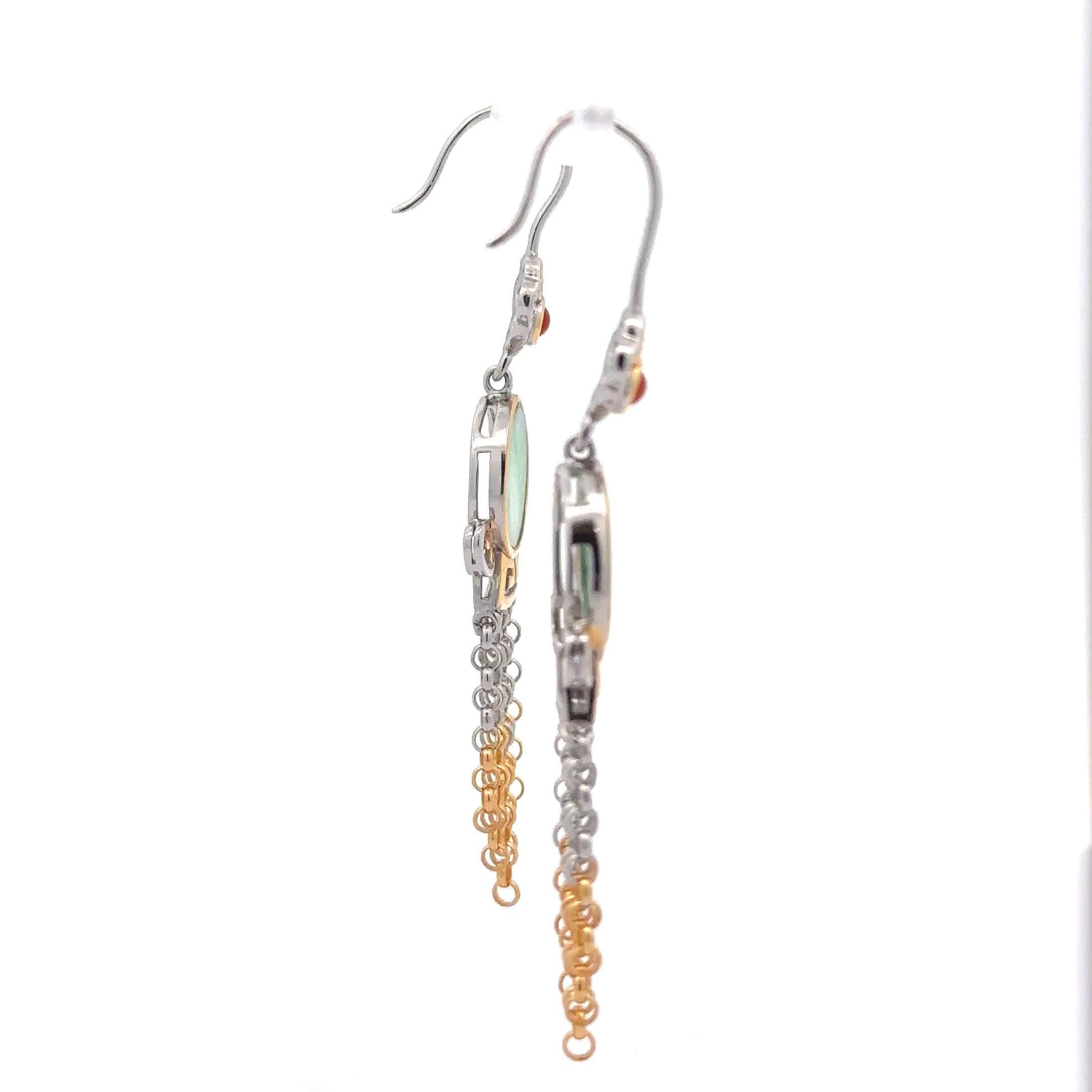 Baikalla Antique Natural Jadeite Jade Sterling Silver Gold Plated Two Tone Dangle Earrings
