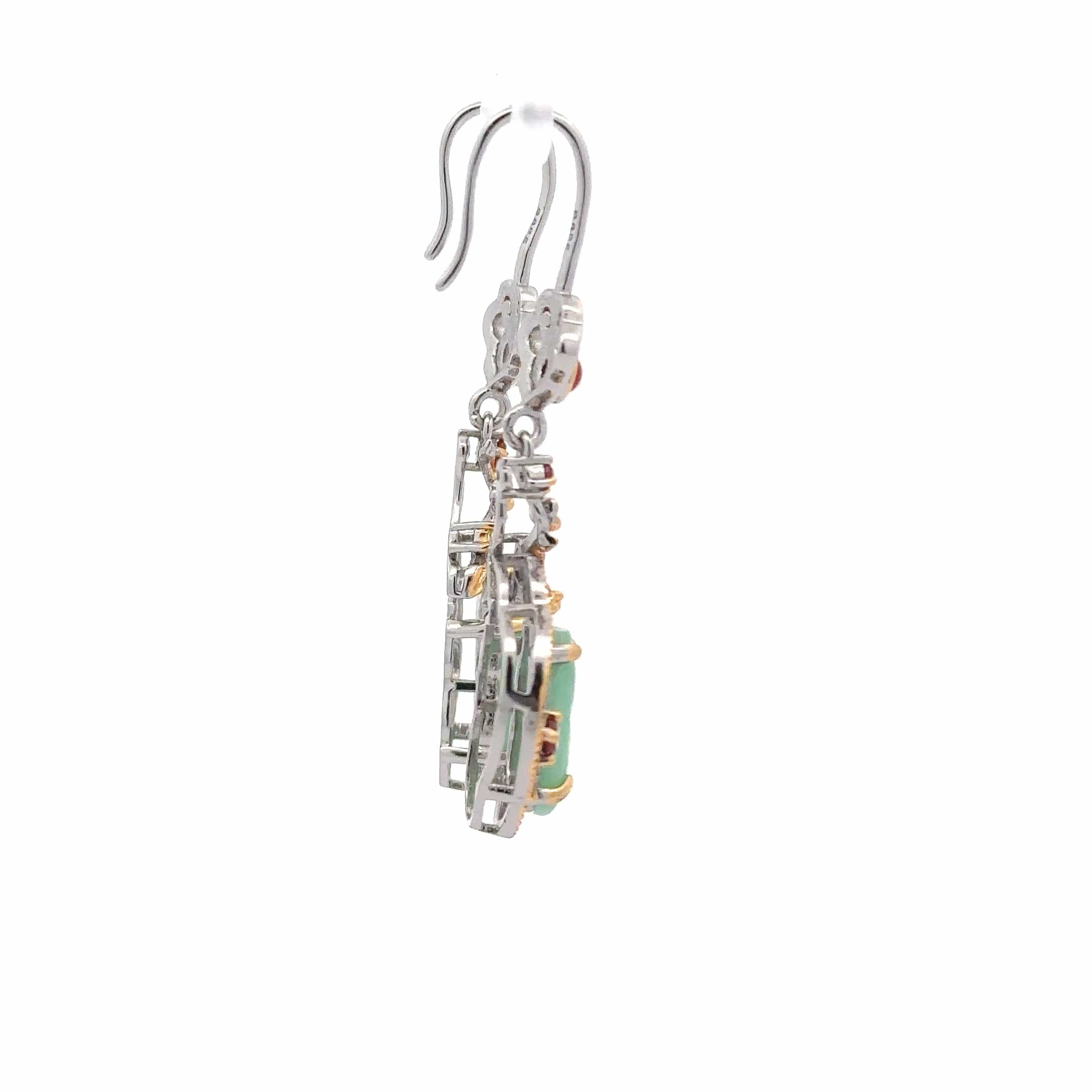 Baikalla Antique Natural Jadeite Jade Sterling Silver Gold Plated Two Tone Dangle Earrings