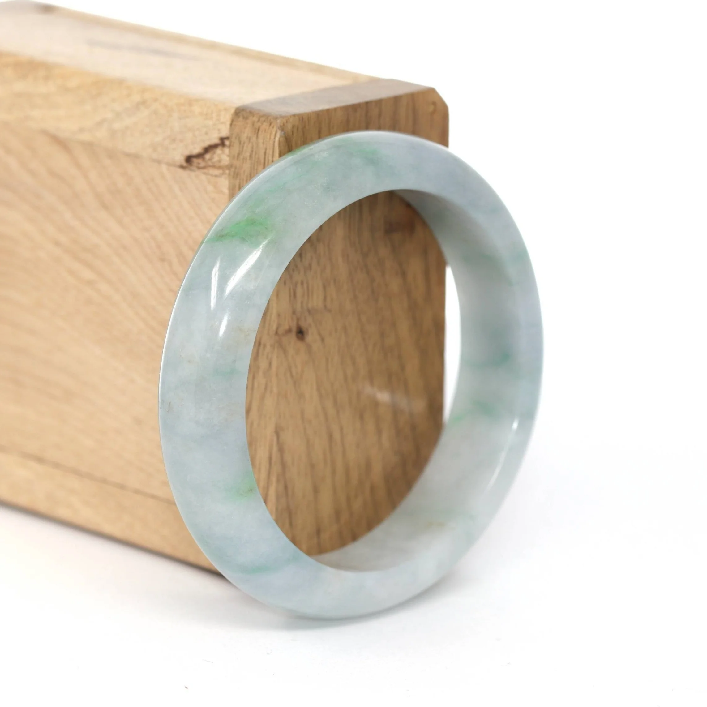 * DETAILS--- Genuine Burmese Jadeite Jade Bangle Bracelet. This bangle is made with fine genuine Burmese Jadeite jade. The jade texture is fine and smooth with green color. It just has little clouds and a natural stone line. The Classic half-round comfort style bracelet. Jadeite jade is the toughest gemstone on the planet. People believe the real jade is a lucky gemstone. It's a special gift for you and your love.