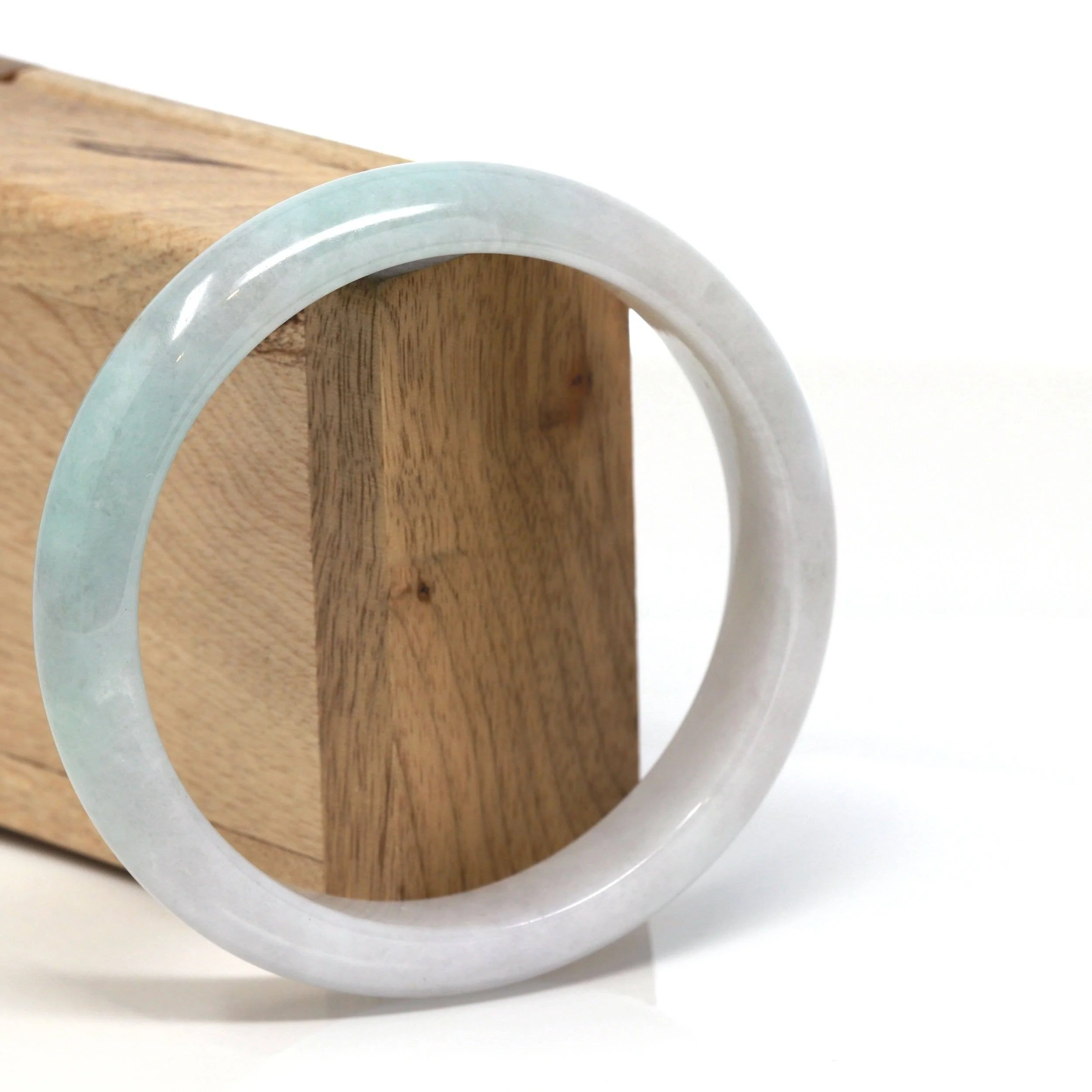 * DETAILS--- This natural Burmese Jadeite bangle is a beautiful light green on one side with a whitish-green color on the other as seen in the pictures. The texture is very even throughout the bangle, very beautifully translucent under the light. This bangle is characterized by beautiful green patches. And very minor stone clouds but there are natural stone clouds. the bangle does have a beautiful, simple, luxurious look to it. Very good for daily wear. Jadeite jade is a tough stone, the hardness is 6.5-7 on the Mohs hardness scale. Making jade a perfect stone for a daily wear bangle. It.s a very good gift for you and your love.