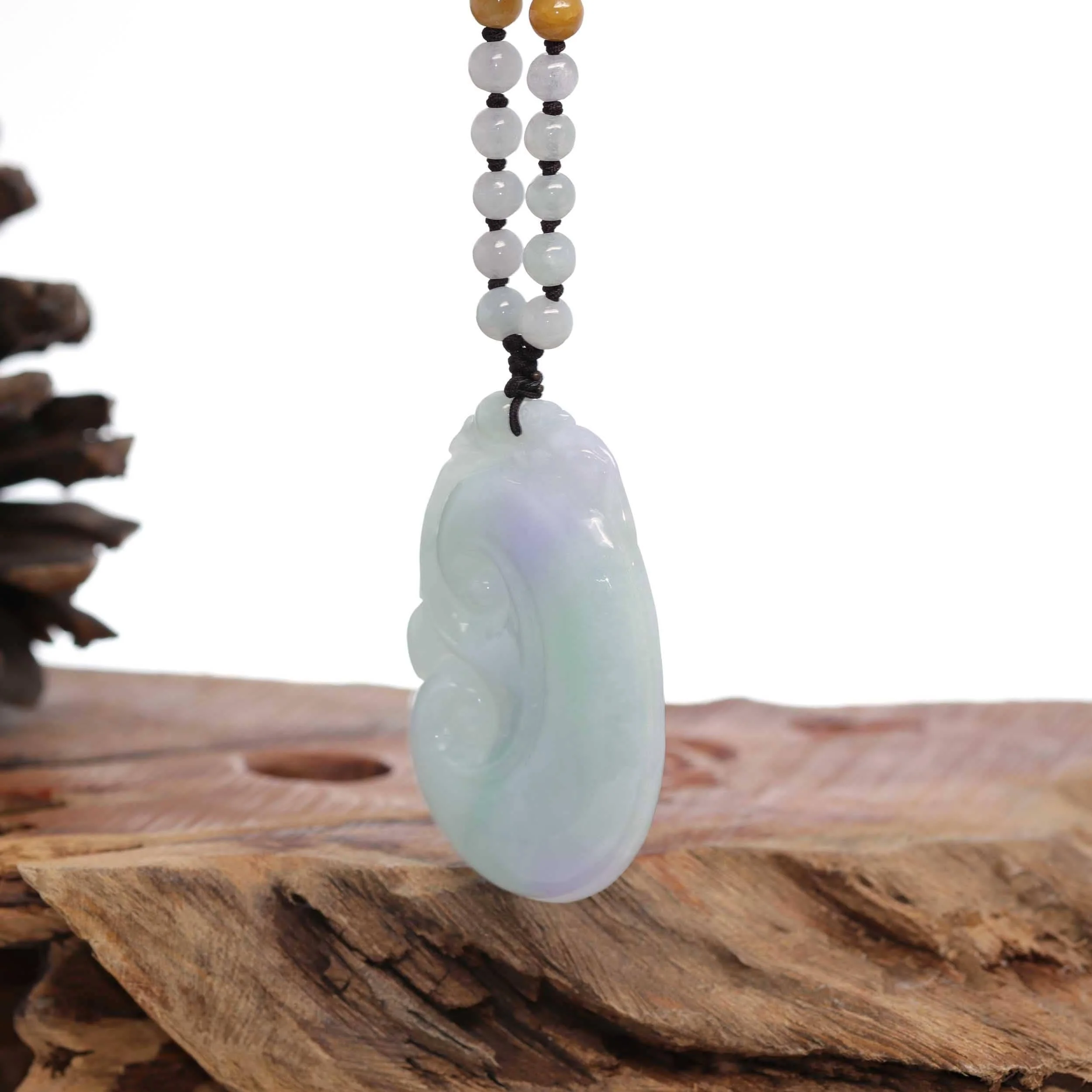 Baikalla "As you wish" Genuine Burmese Jadeite Jade Green and Lavender Ruyi Necklace