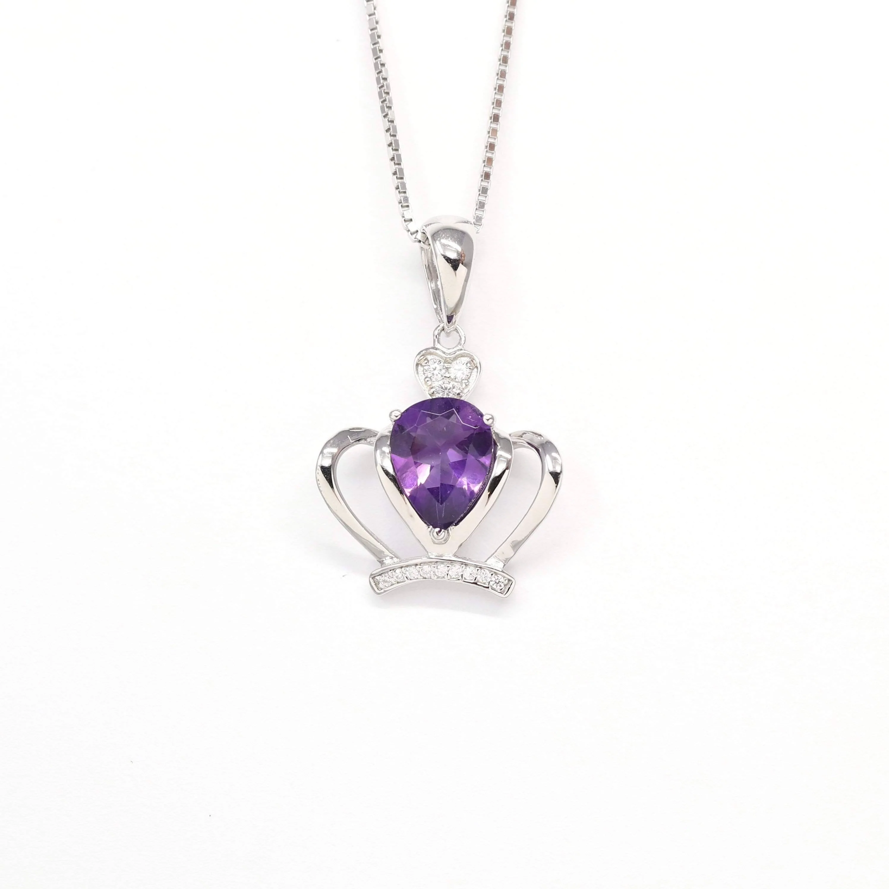 Baikalla "LOVE Crown" Sterling Silver Natural Crown Amethyst Necklace With CZ