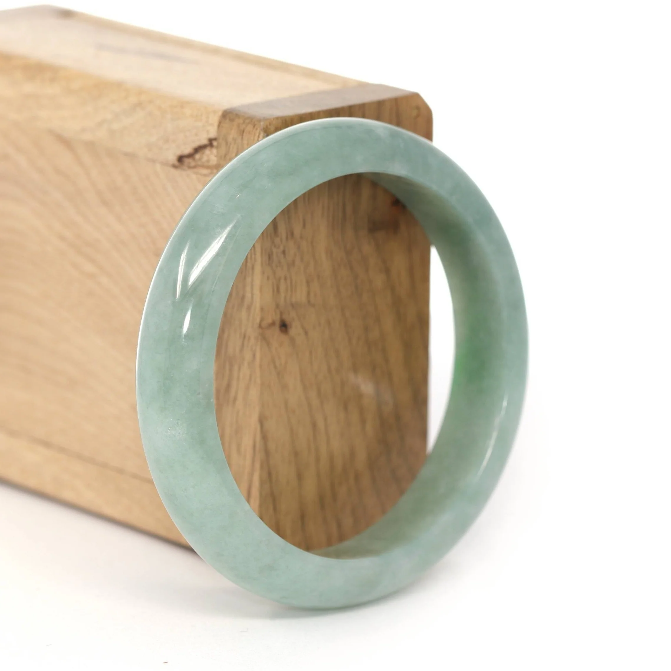 * DETAILS--- Genuine Burmese Jadeite Jade Bangle Bracelet. This bangle is made with fine genuine Burmese Jadeite jade. The jade texture is fine and smooth with green color. It just has little clouds and a natural stone line. The Classic half-round comfort style bracelet. Jadeite jade is the toughest gemstone on the planet. People believe the real jade is a lucky gemstone. It's a special gift for you and your love.