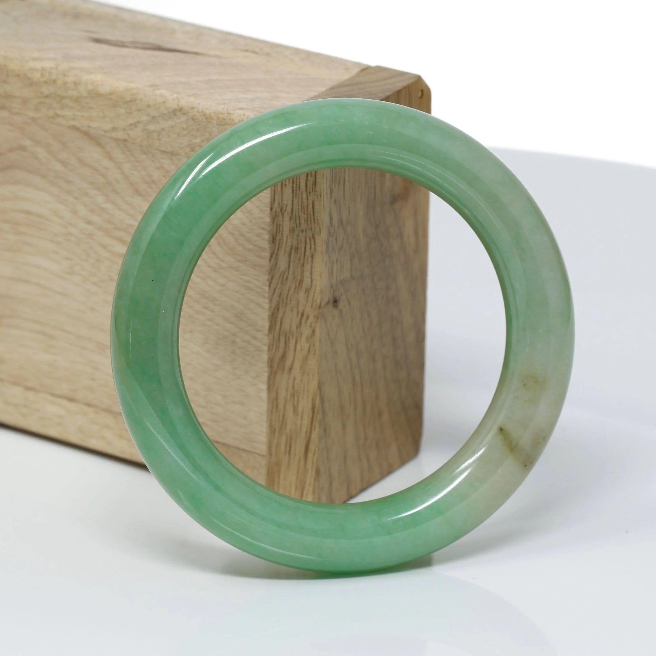* DETAILS--- This bangle is crafted from high-quality jadeite jade and features a beautiful Burmese green base color and a small patch of light hazel. The texture is smooth and translucent with minimal lines and cloudy spots. It's a full round, traditional bangle, which is fully round throughout the bangle.