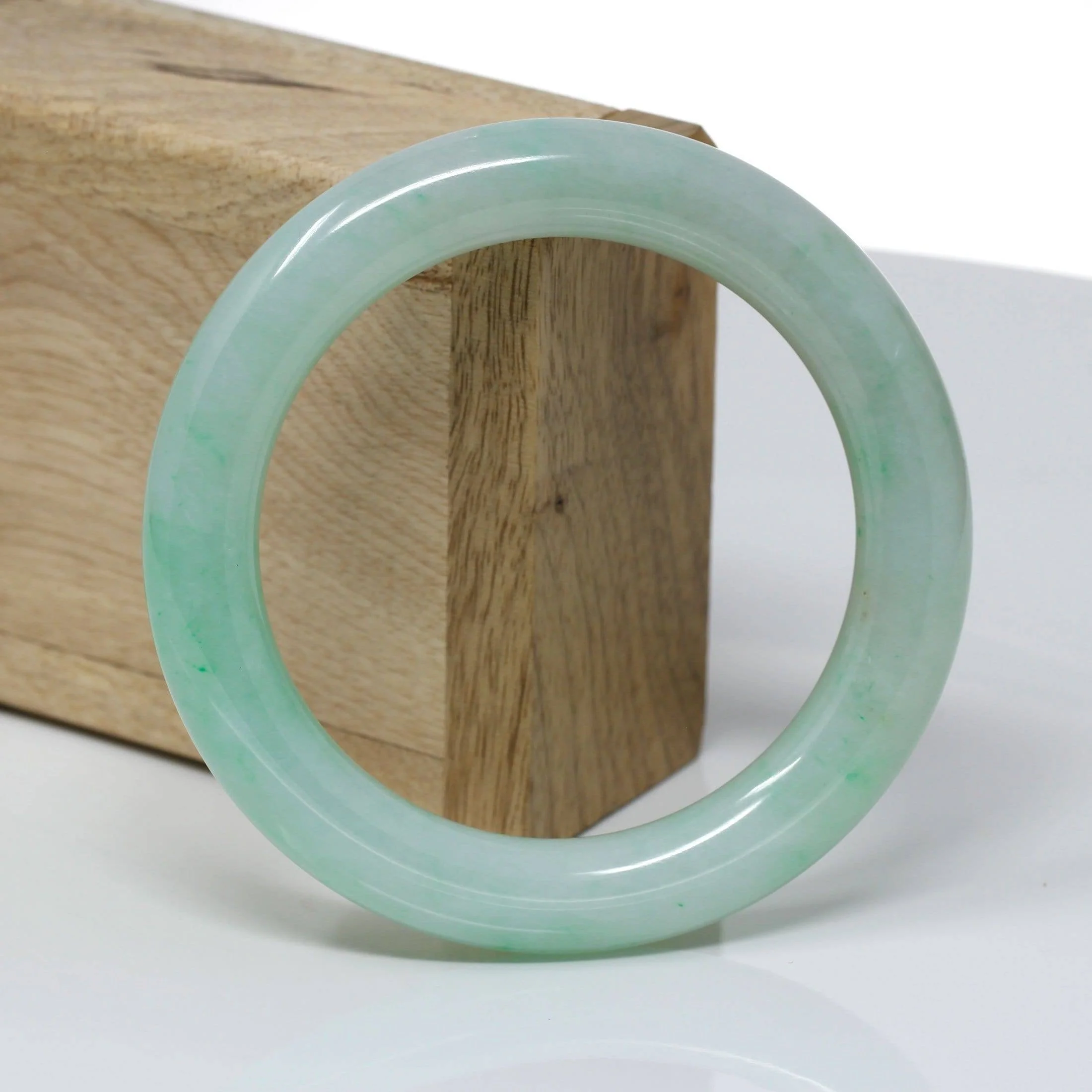 * DETAILS--- Genuine Burmese Jadeite Jade Bangle Bracelet. This bangle is made with high-quality genuine green Burmese Jadeite jade, The jade texture is so translucent with beautiful greens throughout. The green color and translucent white texture is truly a mesmerizing combination. This is a classic round-style bracelet (traditional). This bangle looks completely perfect and affordable with high-quality. It's a high-quality gift for yourself or your love.
