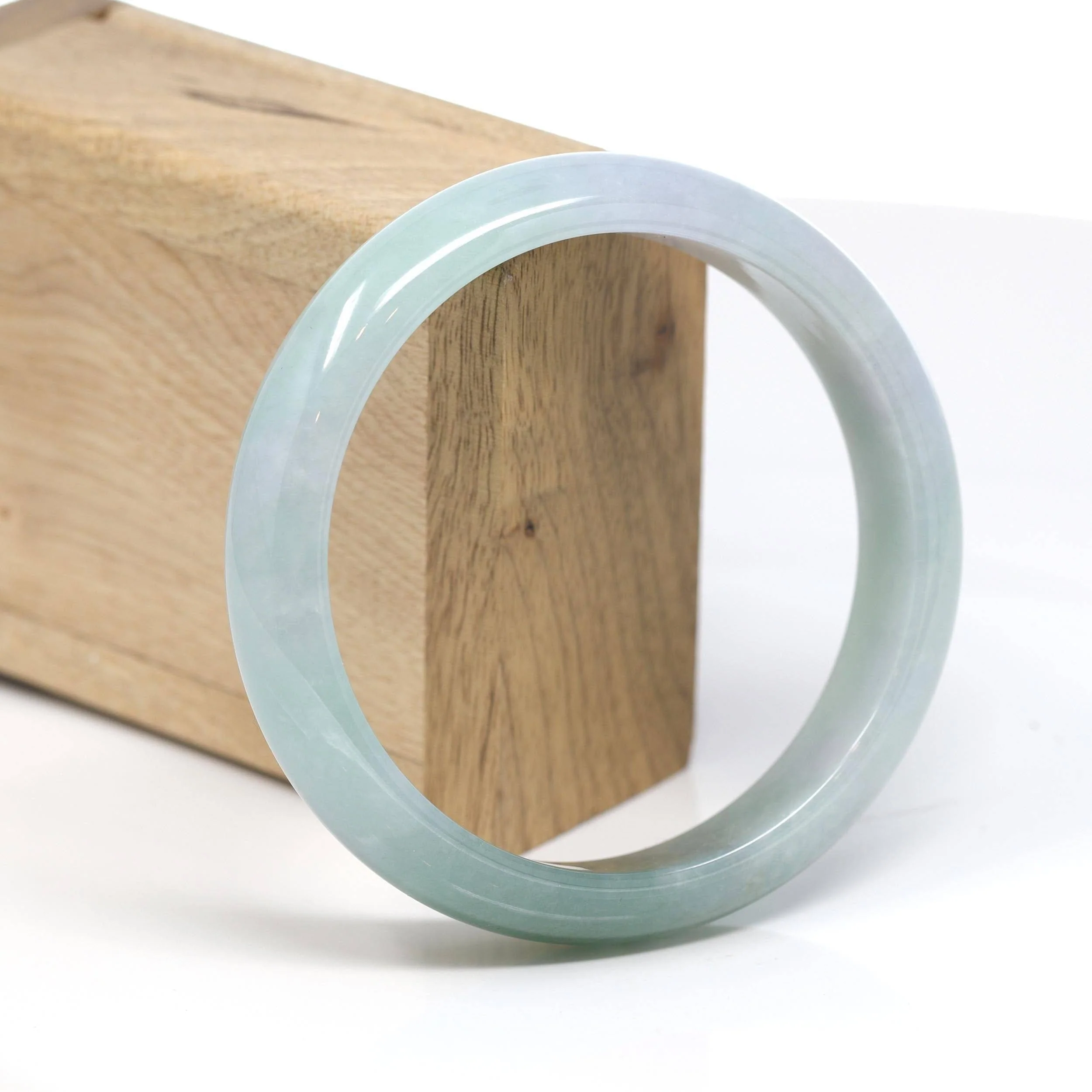 * INTRODUCTION--- Genuine Burmese Jadeite Jade Bangle Bracelet. This bangle is made with very high-quality genuine Burmese jadeite jade, The jade texture is very smooth and translucent with blue-green, lavender colors inside. The bangle looks so perfect large size. It's a very high-end significant gift for yourself or your love.