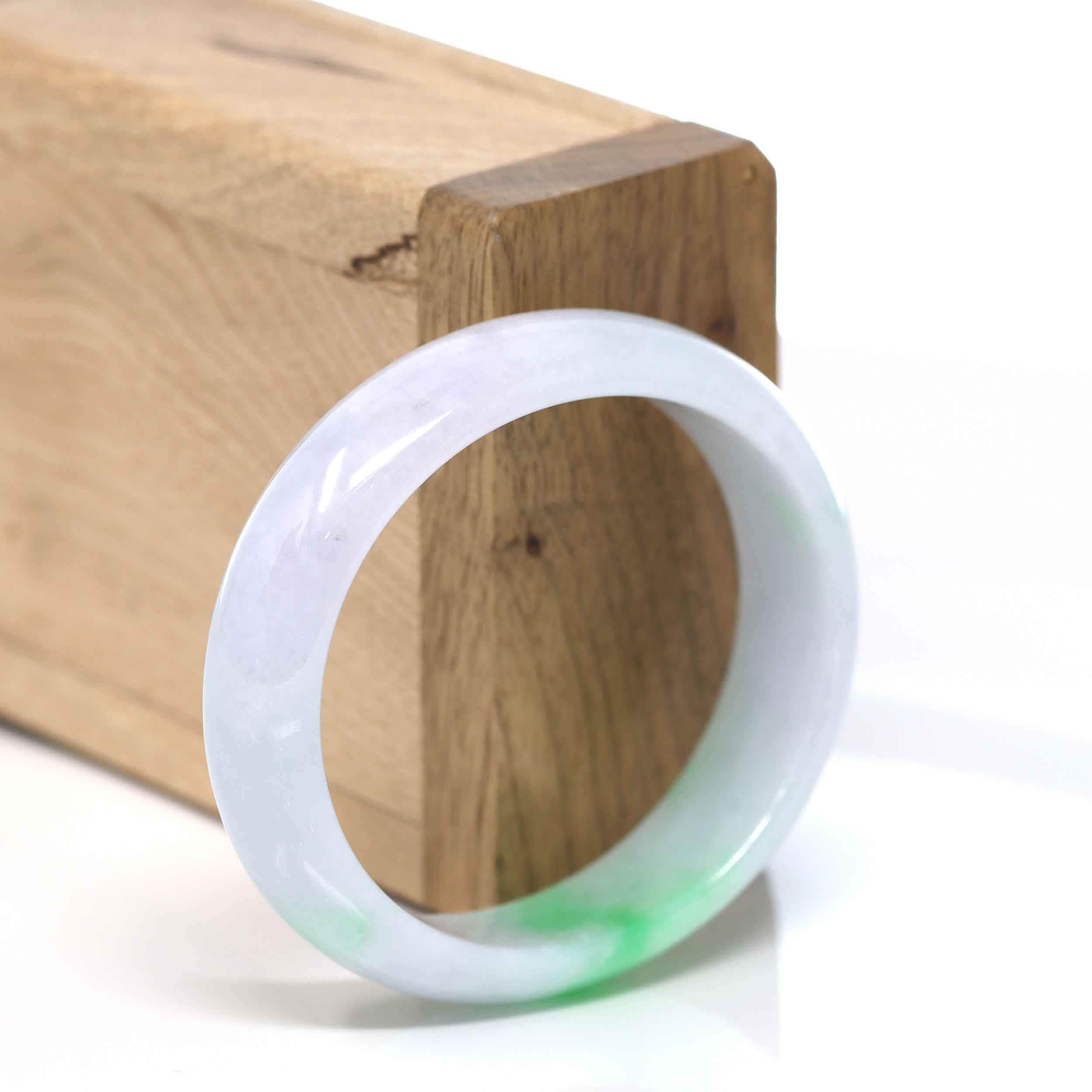 * DETAILS--- This bangle is made with very high-quality genuine Burmese Jadeite jade. The jade texture is transparent with green & lavender colors inside. The green color and transparency lavender texture are truly a mesmerizing combination. The Classic half-round oval style bracelet. This bangle is characterized by beautiful vibrant green patches and lavender colors. The bangle does have a beautiful, simple, luxurious look to it. Jadeite jade is a tough stone; It's a very small size. It's a special gift for you and your love.