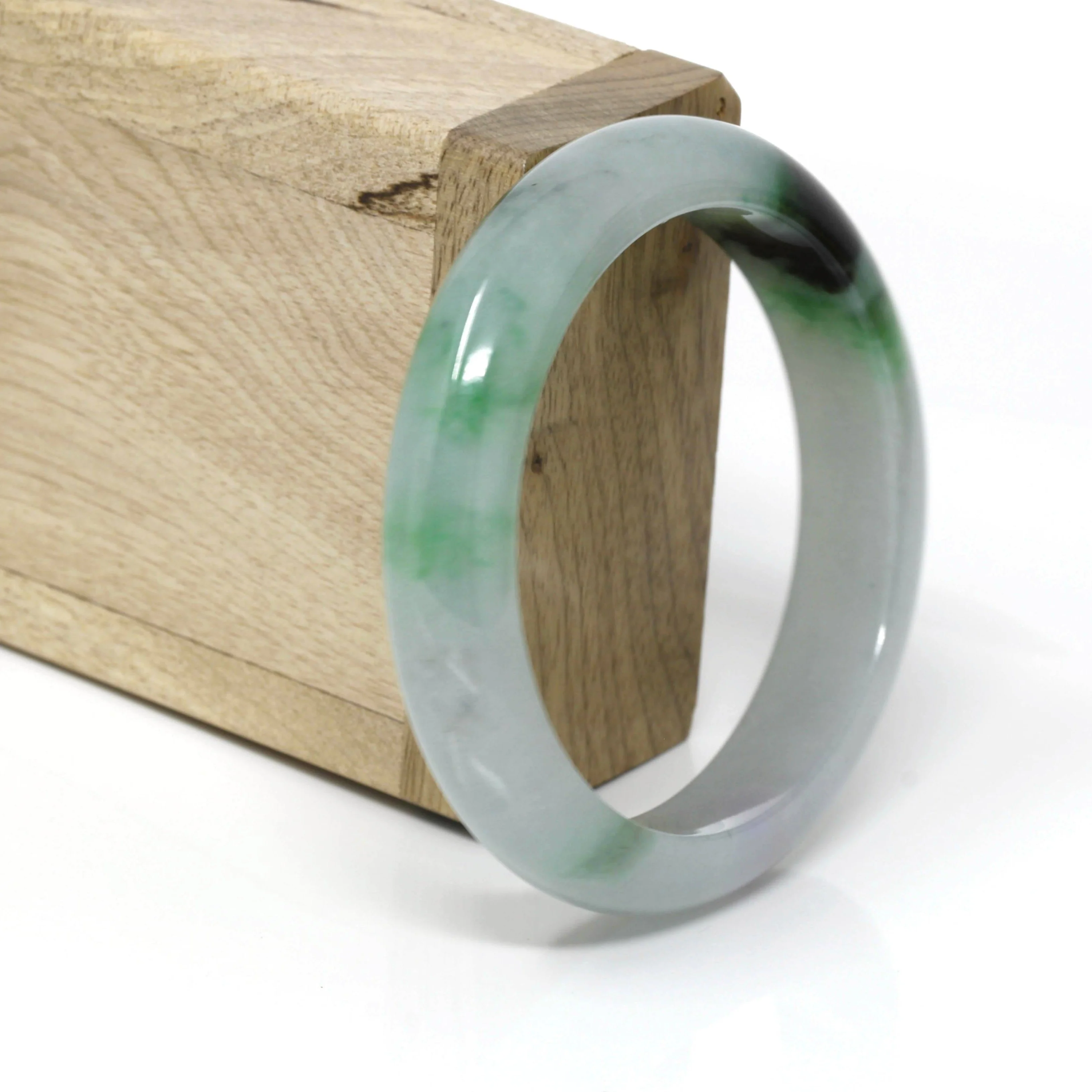 Genuine Burmese Jadeite Jade Ice-Green Lavender Bangle Bracelet ( 56.4 mm )#319