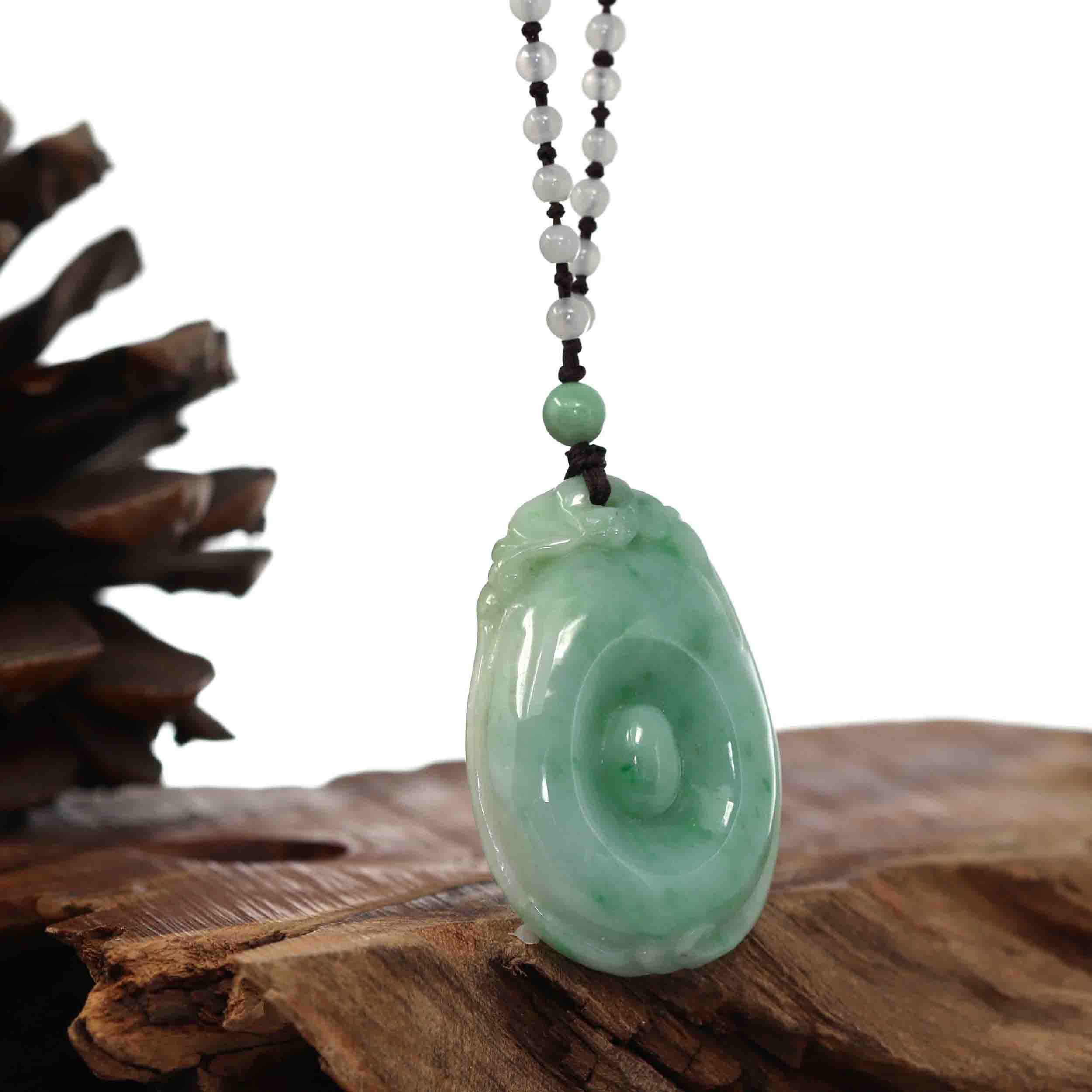 *Design concept-- "Fu" in Chinese literally means, "happiness" This necklace portrays the timeless, good luck, and happiness symbol in natural jadeite jade. This piece is one of a kind and you will not find another like it. It's worn as a good luck charm. Perfect for a gift for a friend who is venturing into a new chapter of life or someone who is venturing into a new business.