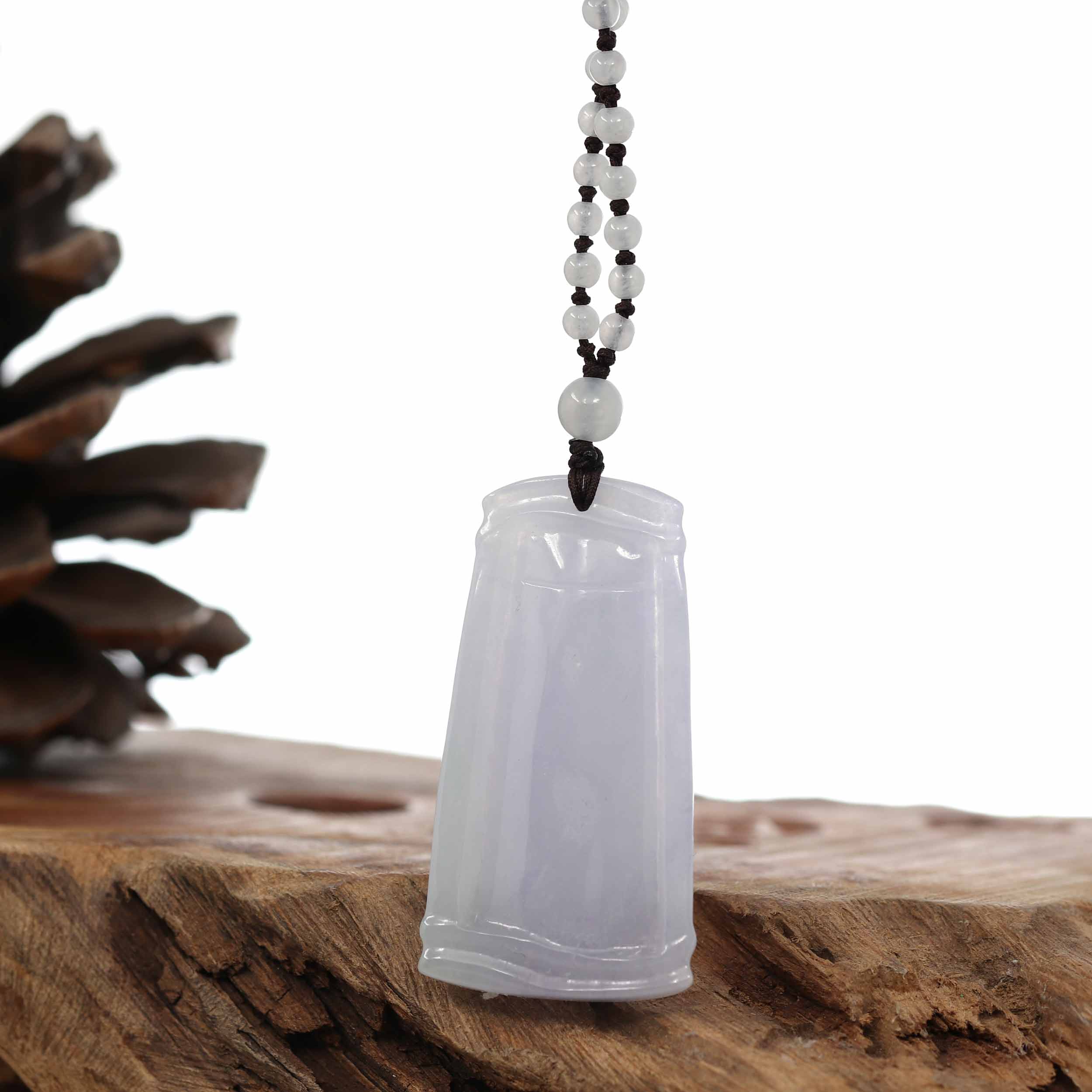 Genuine Light Lavender Jadeite Jade "Good Luck Bamboo" Pendant Necklace With Real Jadeite Bead Necklace