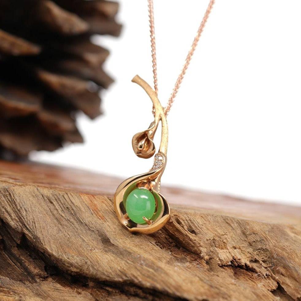 "Glory Flower" 18K Rose Gold Imperial Jadeite Jade Pendant Brooch with Diamonds (2 in 1)