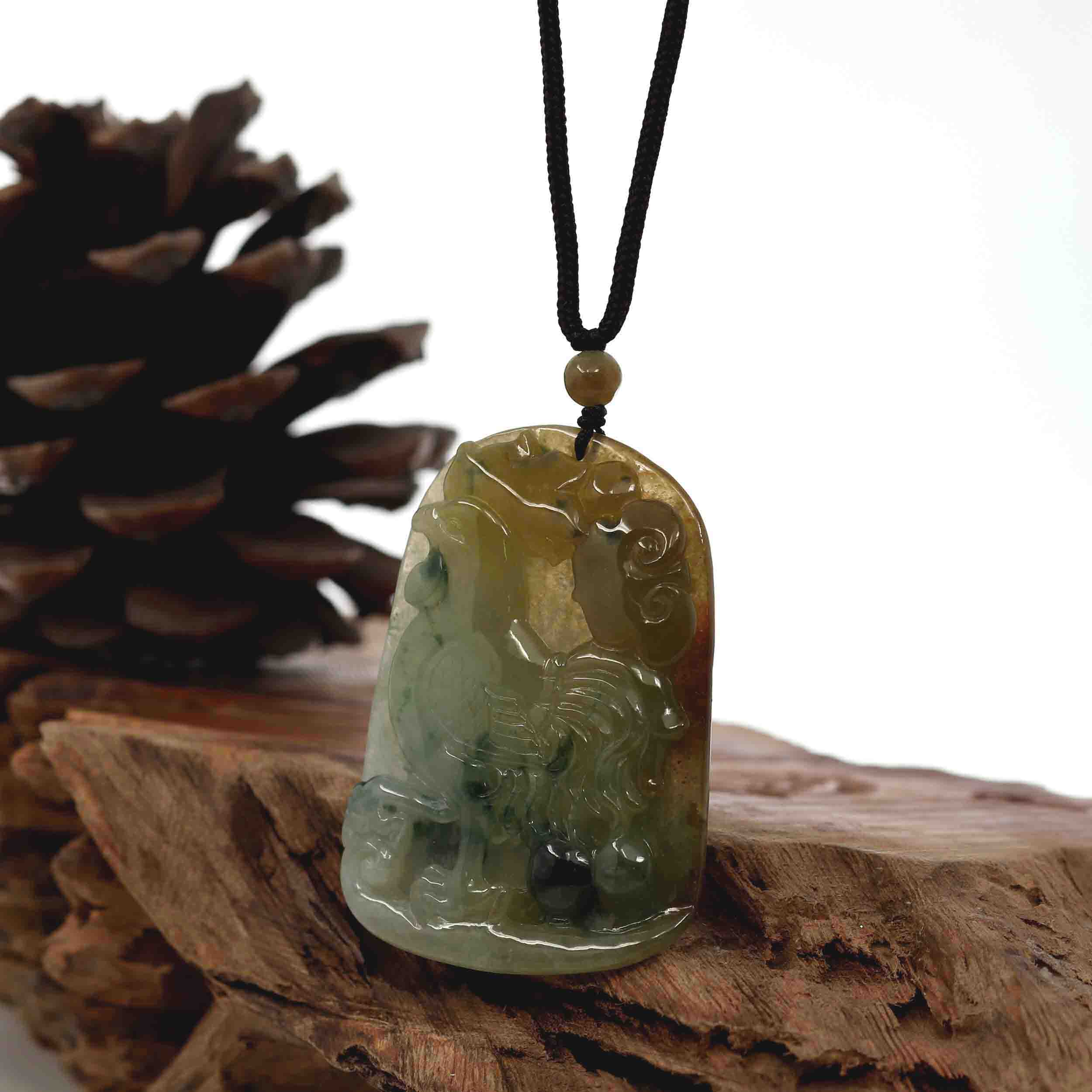 Natural Honey Yellow Jadeite Jade "Rooster" Pendant Necklace For Men, Collectibles.