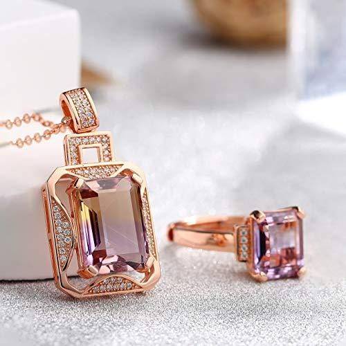 Silver Rose Gold Genuine AAA Royal Ametrine Pendant Necklace Ring Sets