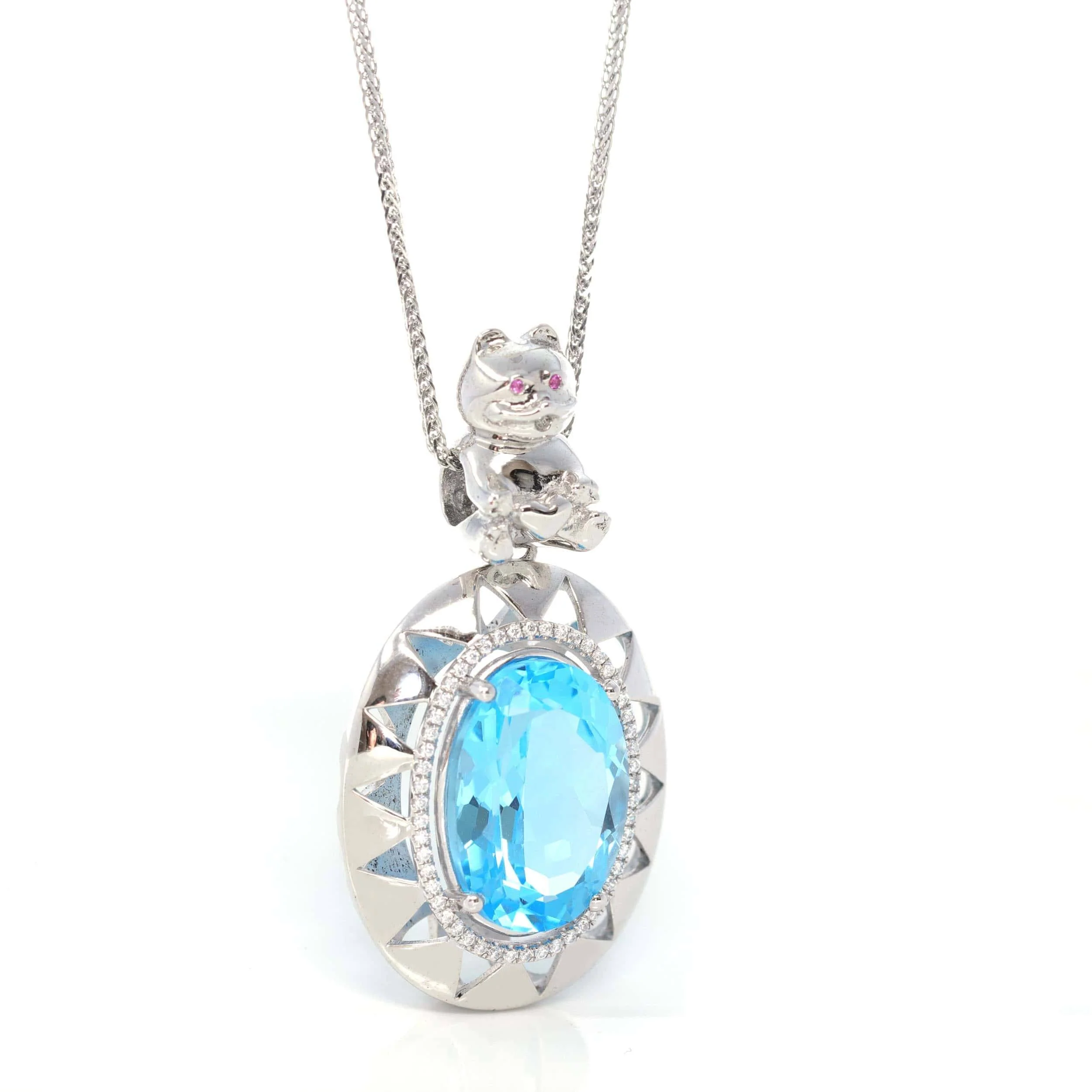 Sterling Silver Natural Topaz Luxury Pendant Necklace With Lovely Bear